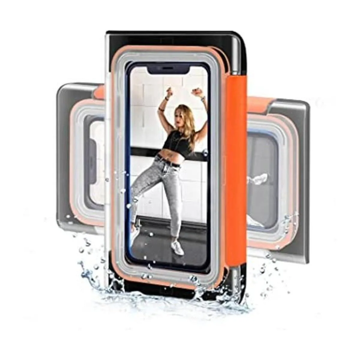 Pantalla táctil sensible: este soporte para teléfono de ducha con pantalla táctil de alta definición y sensibilidad de respuesta, control táctil a través de la pared transparente sin sacar el teléfono de la funda.