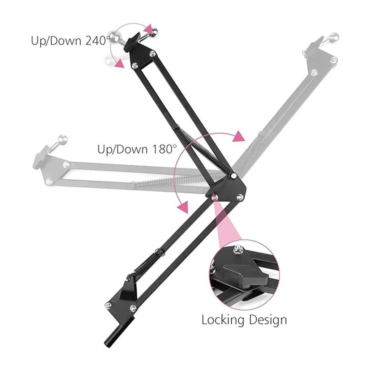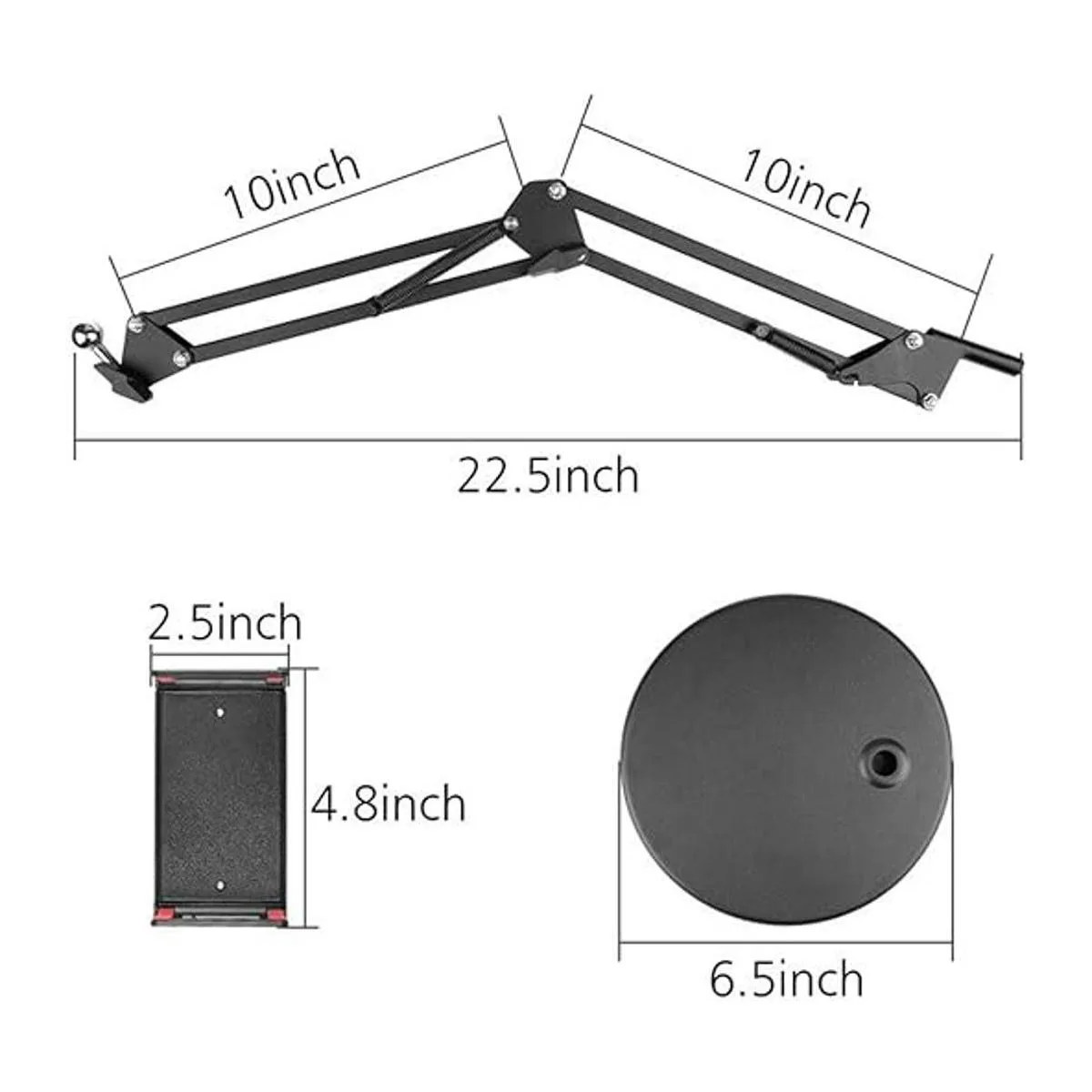 Paquete: 1 brazo de tijera de suspensión articulado, 1 soporte para teléfono celular, 1 base redonda.