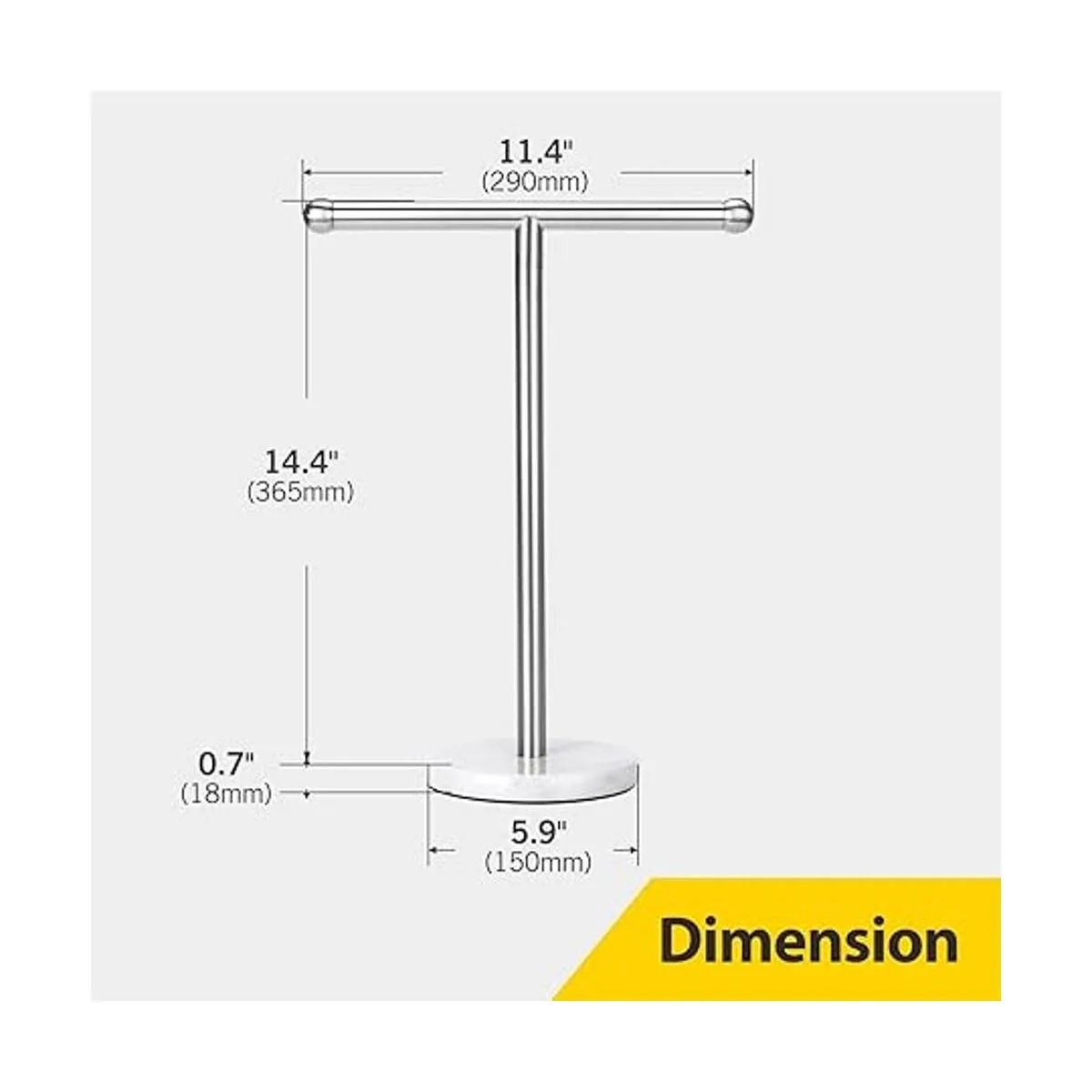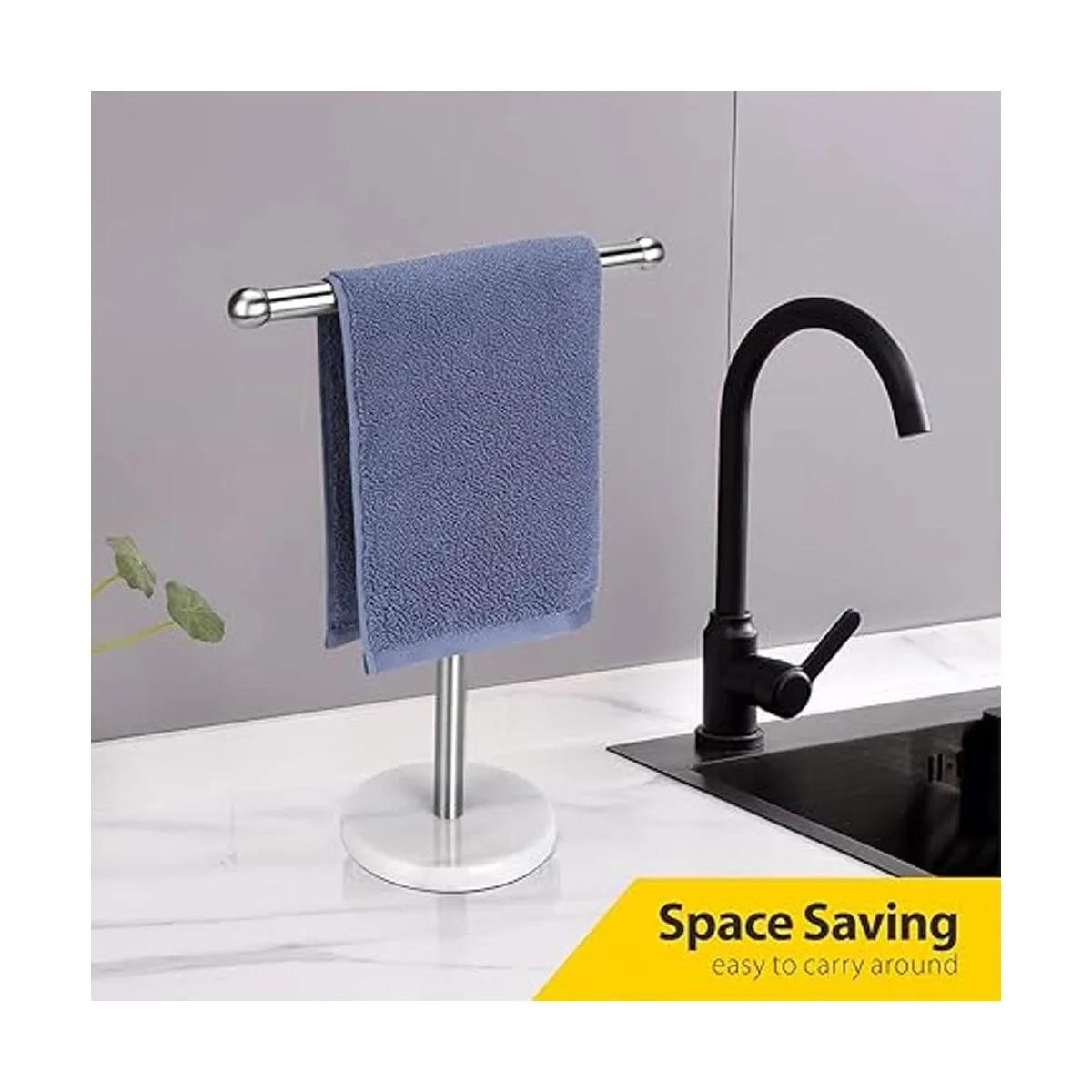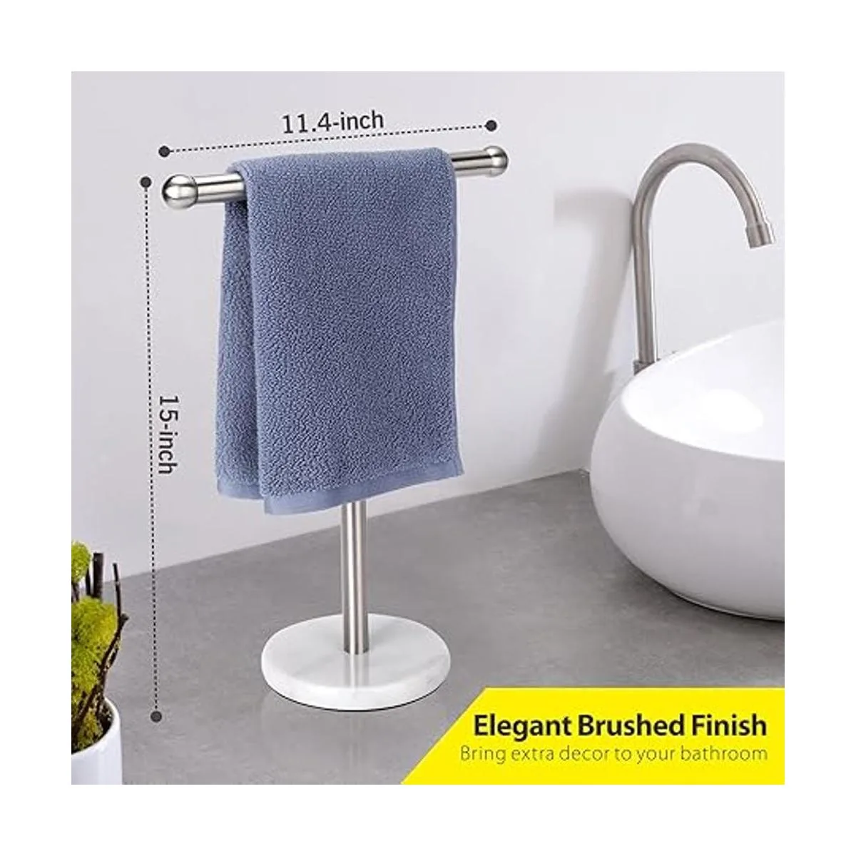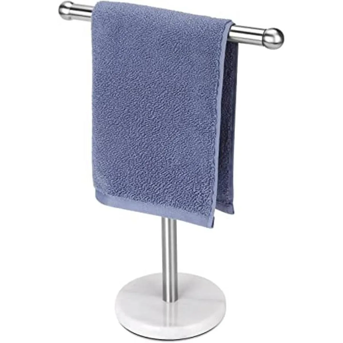 Soporte para toallas de mano con base de mármol pesada, toallero en forma de T, independiente para encimera de tocador de baño, acero inoxidable 304 plata cepillada