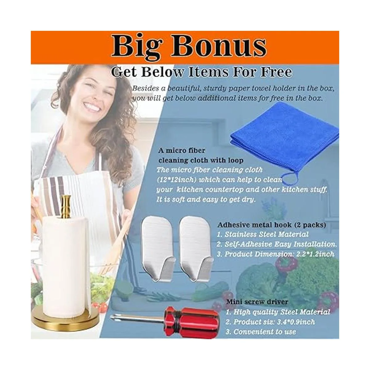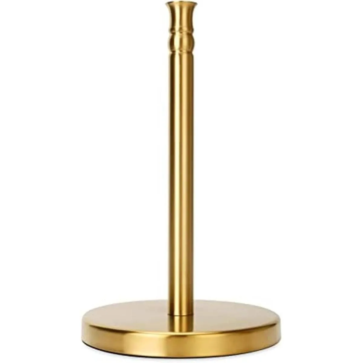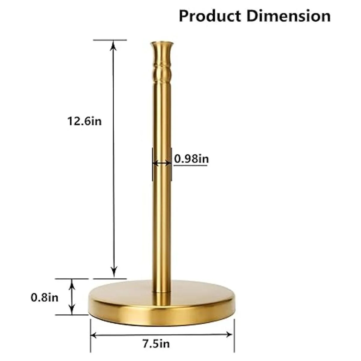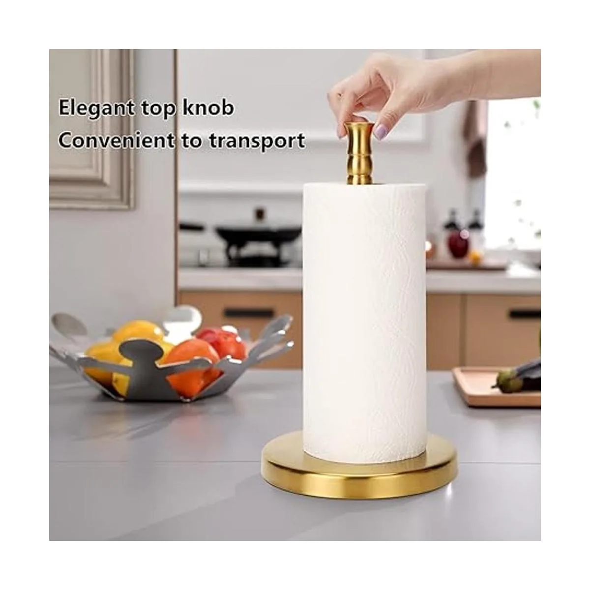 Soporte para toallas de papel, base pesada de acero inoxidable 3 libras de peso y 7.5 pulgadas de diámetro, acabado cepillado dorado, encimera de toallero, toalla de papel rasgado con una sola mano, no se tambalea