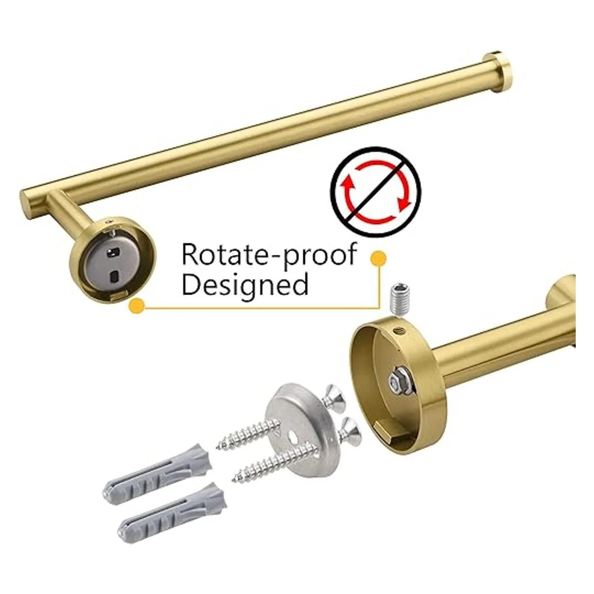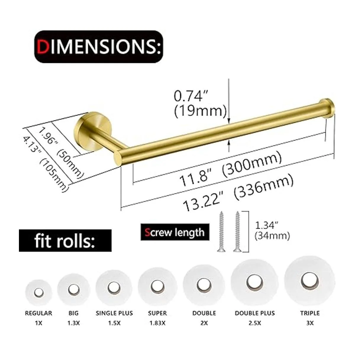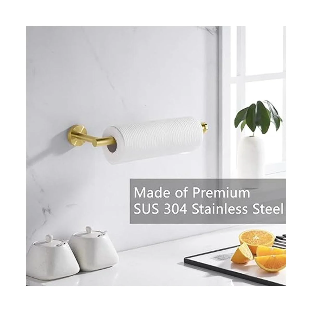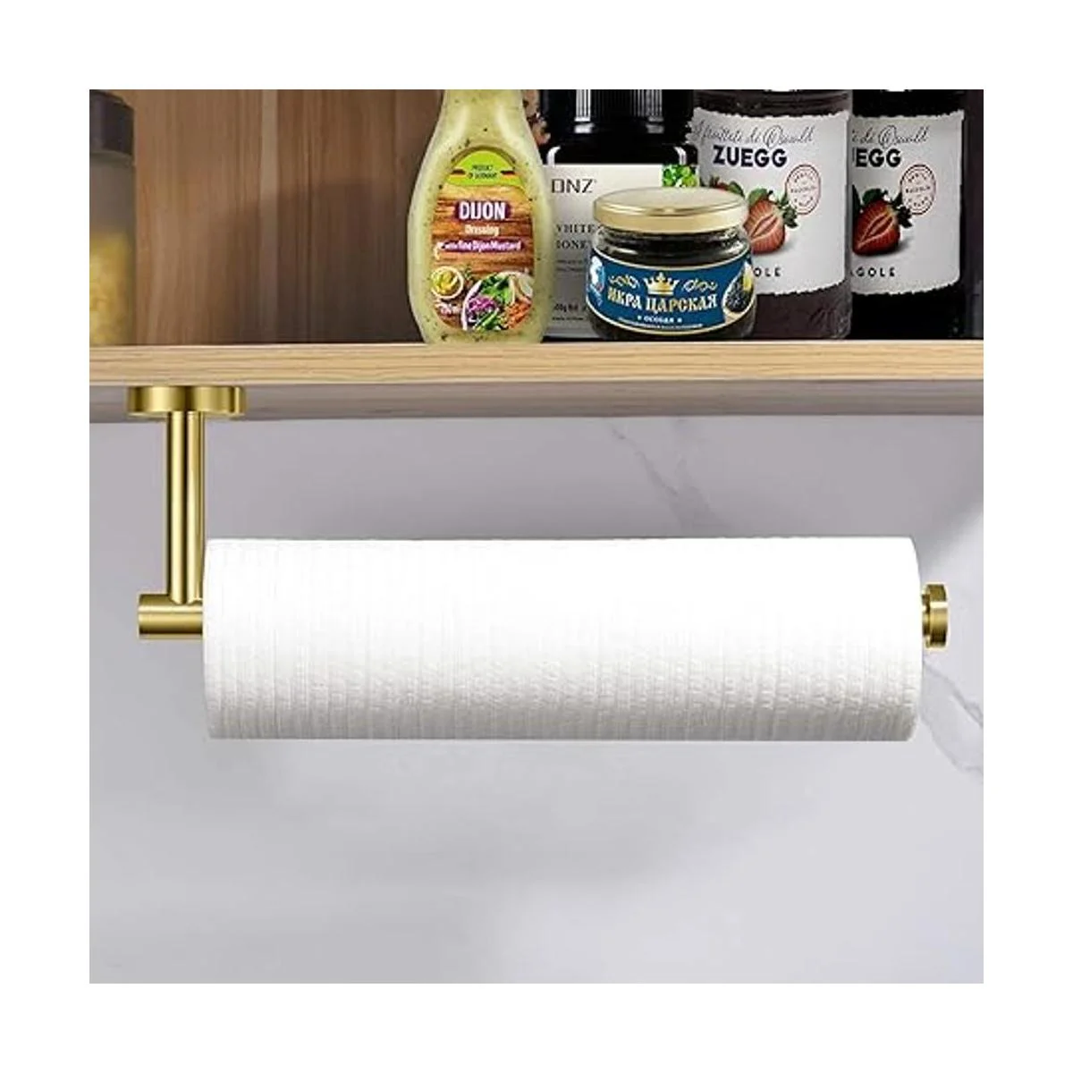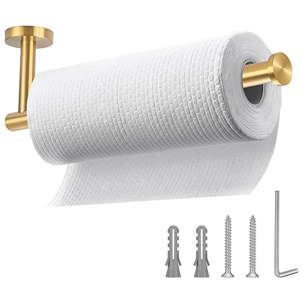 Soporte para toallas de papel dorado cepillado, estante de papel para toallas debajo del armario de cocina, dispensador redondo de acero inoxidable SUS304 montado en la pared para baño, cocina, rollo de toallas de pañuelos, 11.8 pulgadas