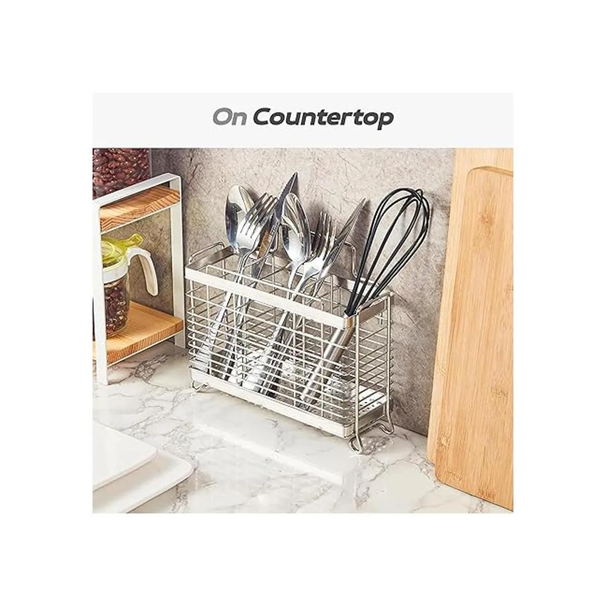 Soporte para utensilios de secado de utensilios con 3 compartimentos divididos, resistente acero inoxidable 304 a prueba de óxido