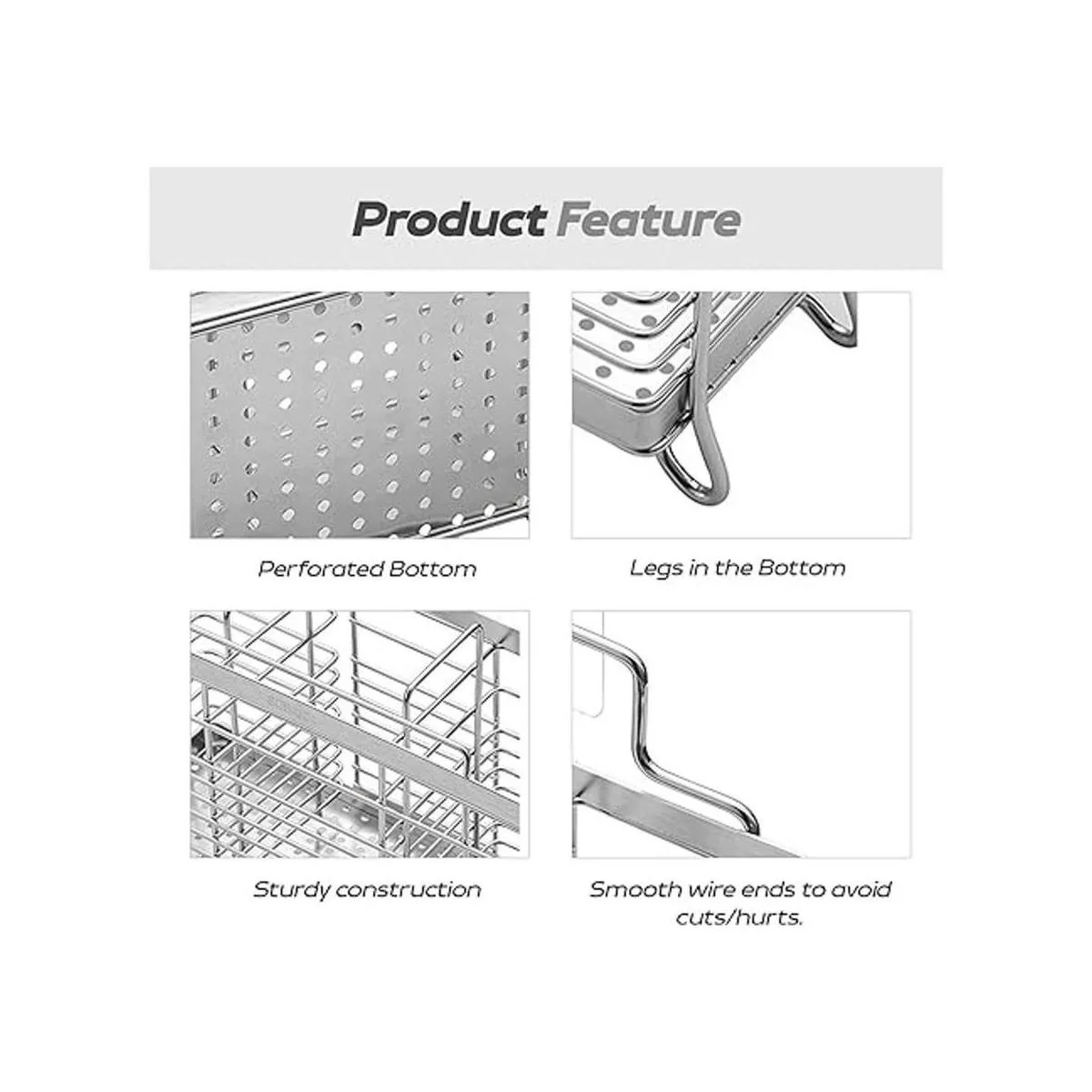 Multiusos: uso para soporte de utensilios, soporte para cepillos de dientes, organizador de herramientas, etc. 3 compartimentos divididos para separar y organizar utensilios, lápiz, cepillo de dientes y pasta de dientes en la vida cotidiana. Malla inferior más apretada que evita que se caigan. Mantén las encimeras claras, no más desorden alrededor del fregadero.