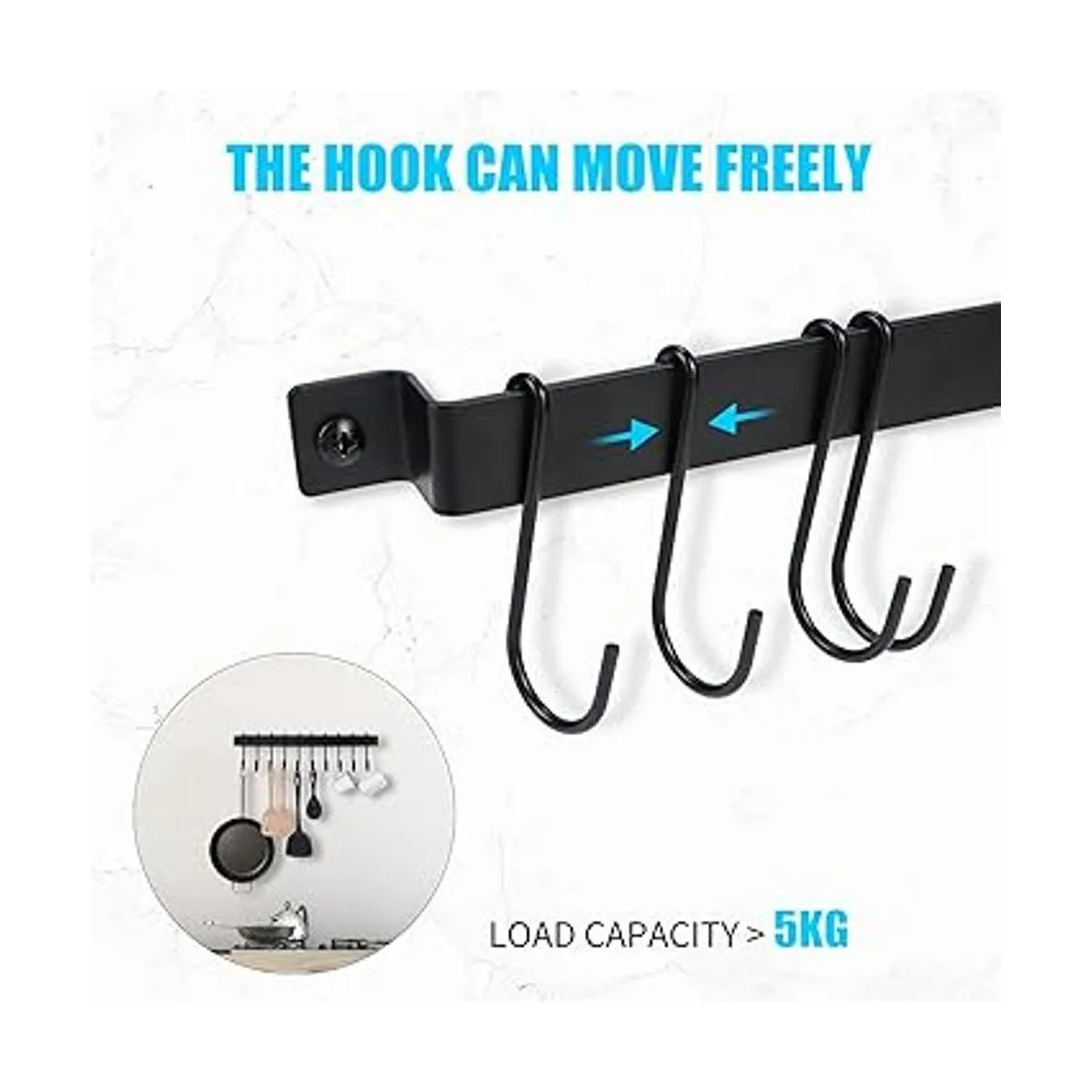 Estable y duradero: la barra colgante de cocina está hecha de acero al carbono de 0.118 in de grosor y duradero, que puede soportar hasta 17.6 lbs. Puede organizar tus utensilios de cocina, ollas, tazas de café y otros artículos. El estante de gancho es antioxidante, lo que es adecuado para varias escenas como cocina, baño, sala de herramientas, cafetería, etc.