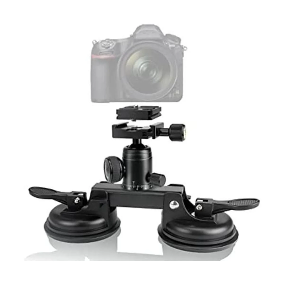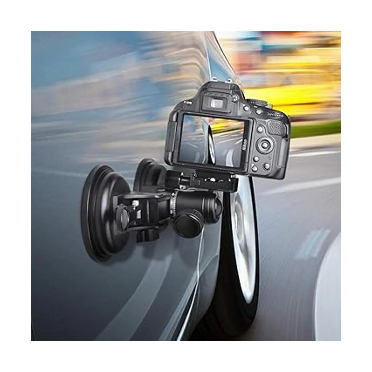 Consejos y ventosa más fuerte: Nota: asegúrate de que su superficie esté lisa y limpia antes de usar. Cuando se utiliza una DSLR de alto precio en un coche, no podemos ser demasiado cuidadosos. El soporte de doble ventosa esed 5 veces más grueso goma orgánica para construir, proporciona 300 N de fuerza equivale a 3 ventosas normales, da seguridad adicional a tu cámara DSLR.