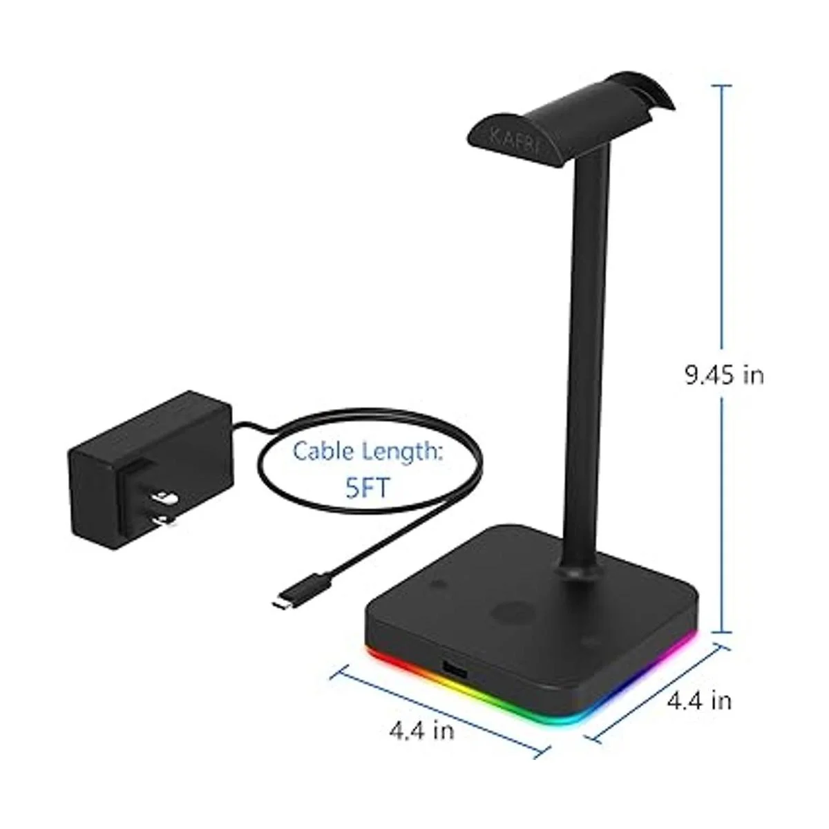 Soporte RGB para auriculares con cargador inalámbrico KAFRI para escritorio, soporte para auriculares con almohadilla de carga QI de 10 W7.5 W y puerto USB QC 3.0, adecuado para videojuegos, escritorio, juegos de mesa, accesorios para auriculares
