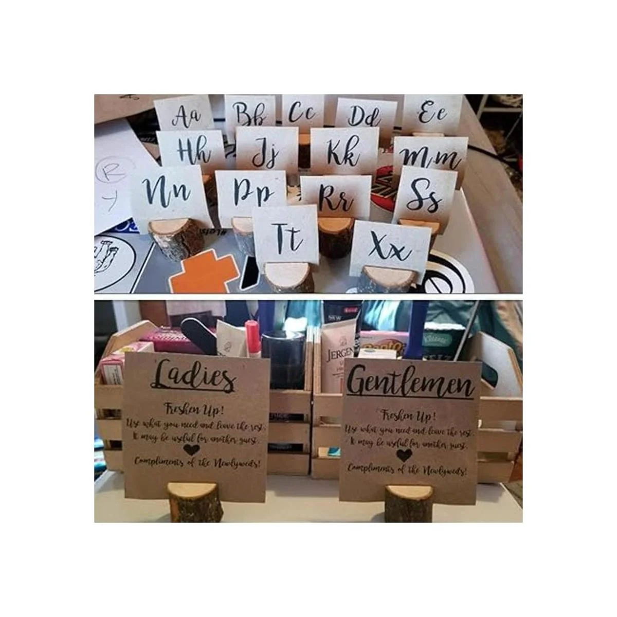 Hecho de madera natural como soporte para tarjetas de nombre, soporte para número de mesa, soporte para tarjetas de menú, soportes para tarjetas de fotos, clips para fotos