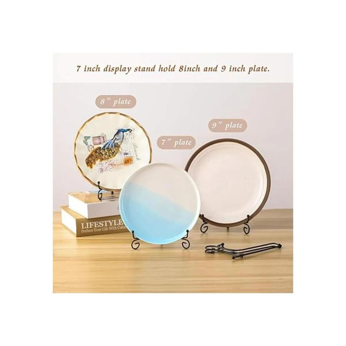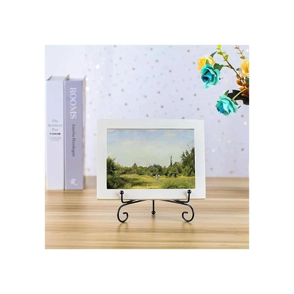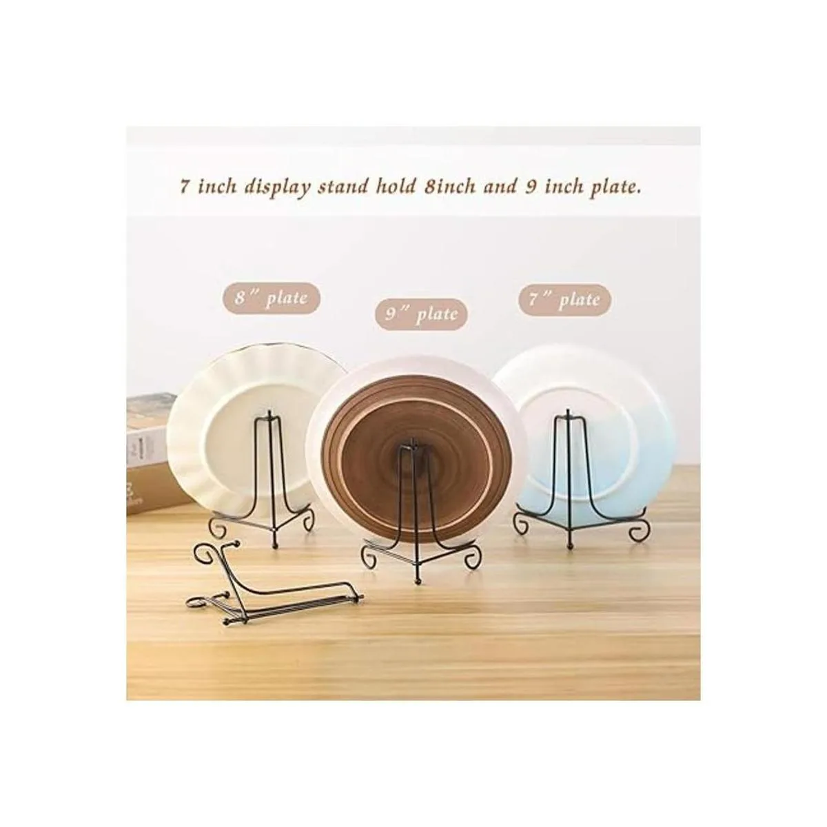 Soporte de metal curvado para mostrar fotos, libros, obras de arte, colector de platos pequeños y mucho más.