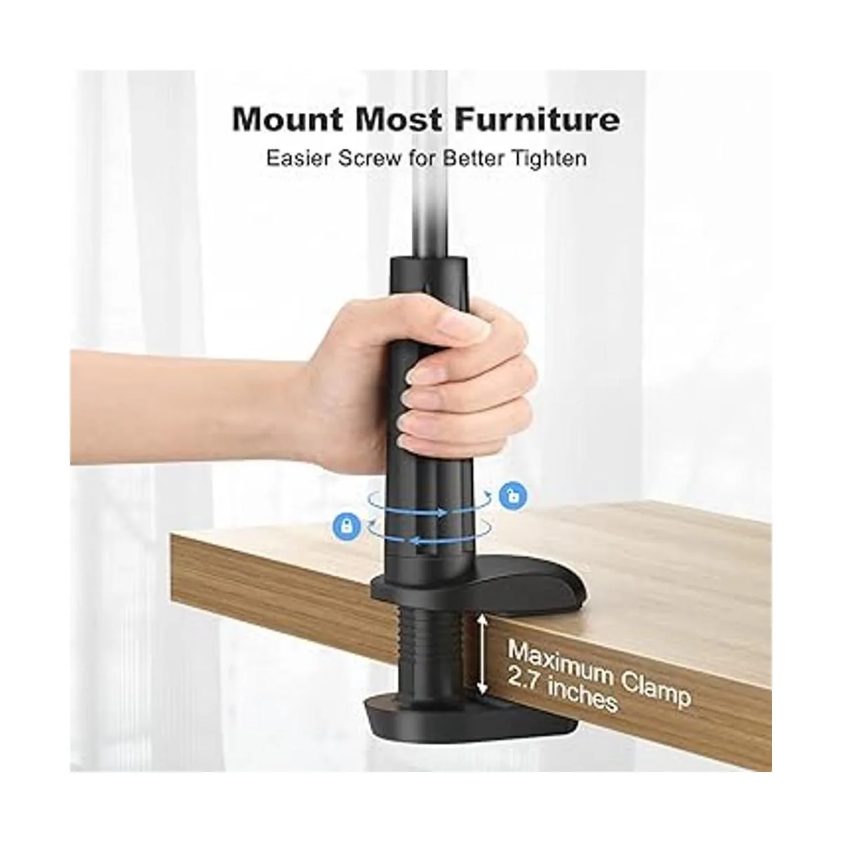 Estable y duradera La base de abrazadera ajustable gruesa varía de 0 a 2.36 pulgadas, que se monta más estable en el marco de la cama, mesita de noche, cabecero, mesita de noche, escritorio, mesa auxiliar y encimera de cocina, etc. Diseñado con una base de silicona antideslizante, el soporte no raya la superficie de tus muebles.