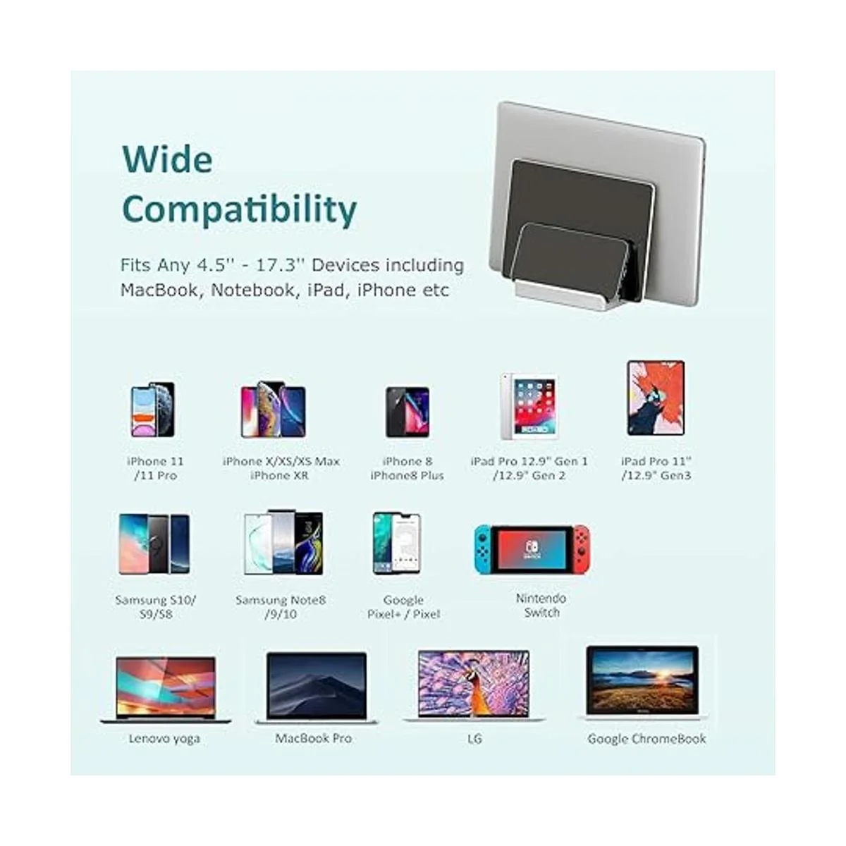 Tú lo haces, fácil, ajustable, inteligente soporte vertical para laptop: crea tu combinación favorita; intenta añadir 2 laptops, 2 tabletas/dispositivos iPhone para ahorrar de 4 a 6 pies; o 1 portátil iPad grande teléfono celular/disco duro externo teclado Bluetooth y bolígrafos para ordenar todo tu escritorio.