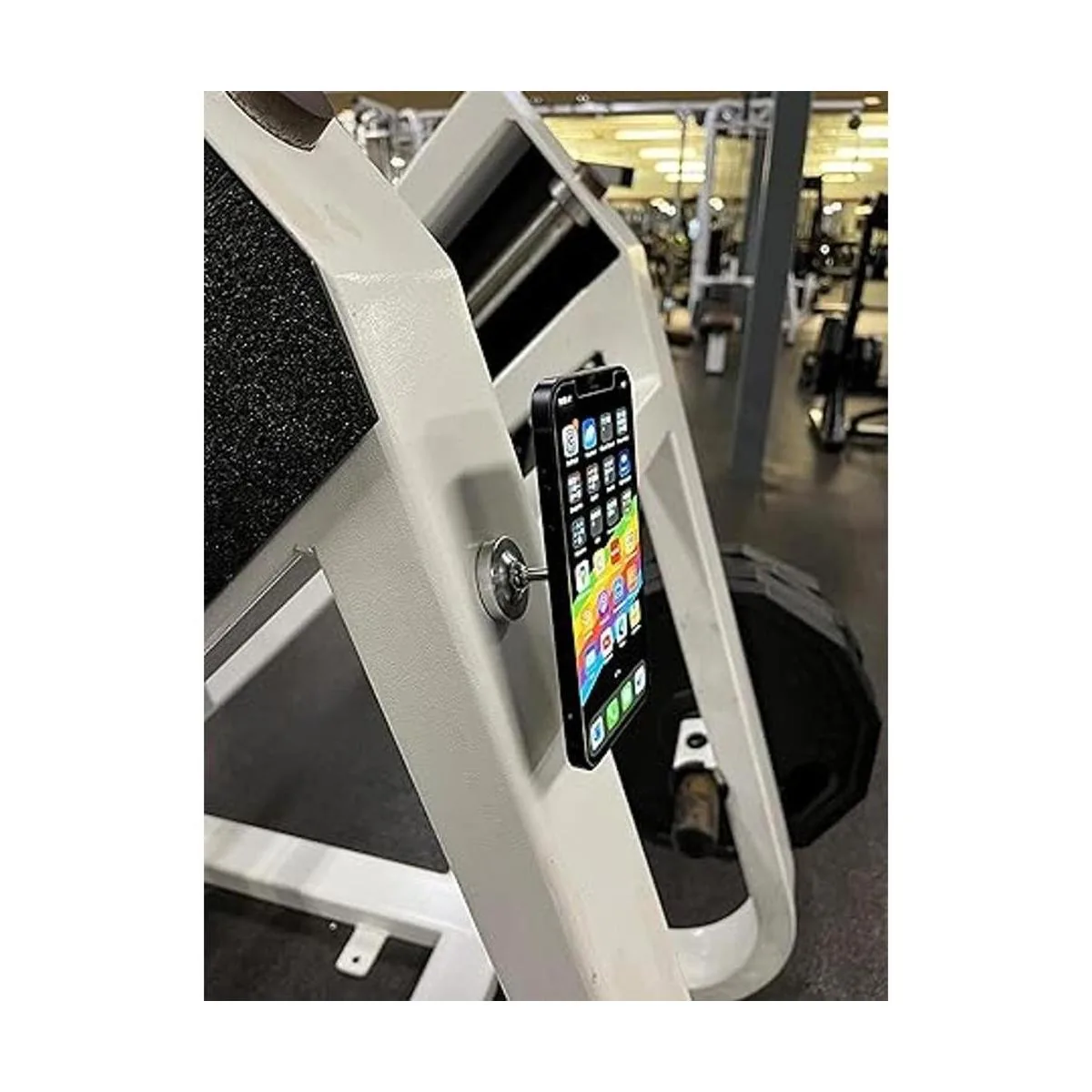 Soporte y soporte magnético doble para teléfono de gimnasio. Se fija magnéticamente a la superficie de metal.