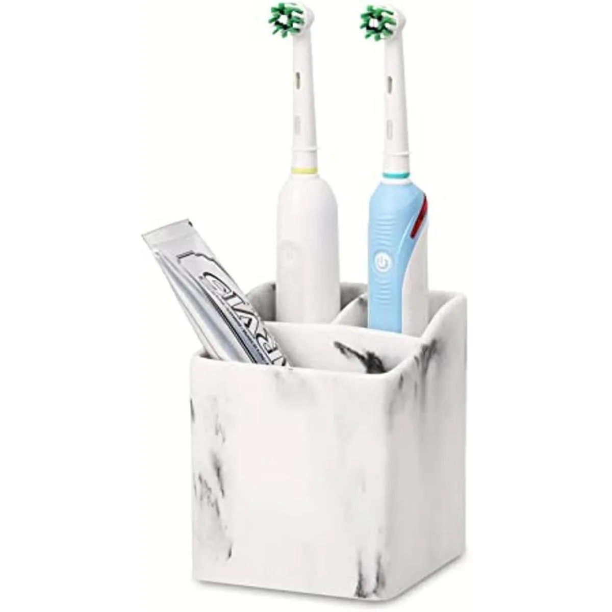 Soportes para cepillos de dientes para baños, soporte para cepillos de dientes eléctricos de 3 ranuras, organizador para cepillos de dientes de mármol blanco y pasta de dientes para maquinilla de afeitar, hisopo de algodón, hilo dental, enjuague bucal, organizador de mostrador de baño, etc.