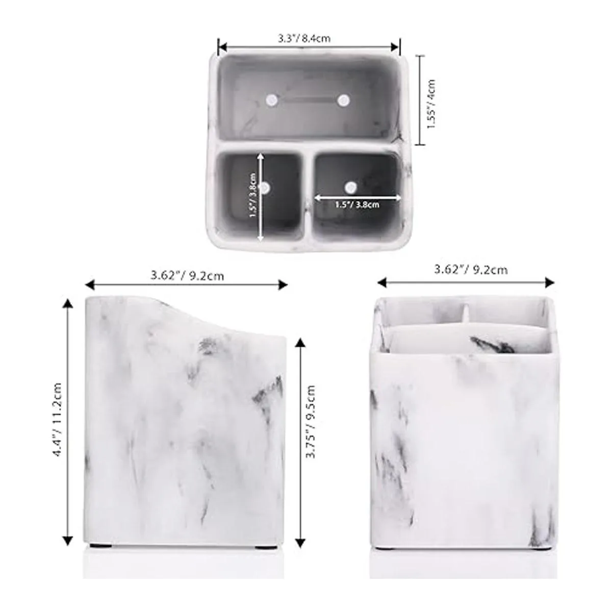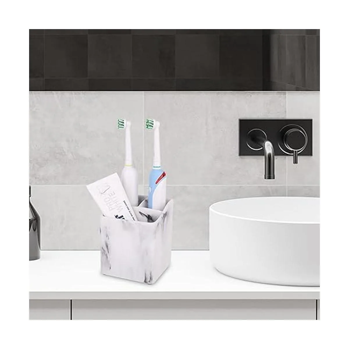Material: el organizador de cepillos de dientes impermeable está hecho de resina ecológica, material de grano. No son productos de plástico, en comparación con los productos de vidrio y porcelana, se pueden utilizar en un ambiente húmedo durante mucho tiempo, no se rompen y no se decoloran.