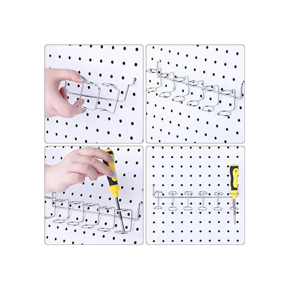 Soportes para destornilladores, accesorios para tablero de clavijas, soportes para herramientas multianillo, estantes organizadores de herramientas multiherramientas para clavijas, alicates plata, 4 piezas
