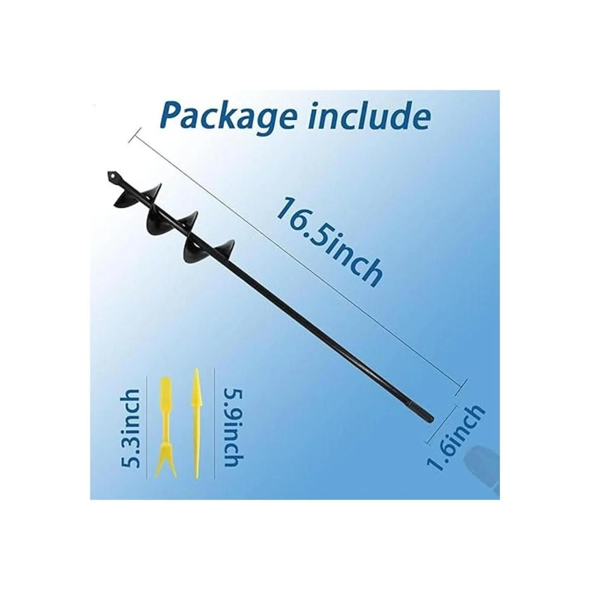 El eje de acero de 0.4 in se adapta a taladros de cualquier tamaño, 1.6 in de diámetro x 16.5 in de longitud te ayudará a cavar rápidamente agujeros de hasta 16.5 in de profundidad y 1.6 in de ancho utilizando la potencia de tu taladro de mano.