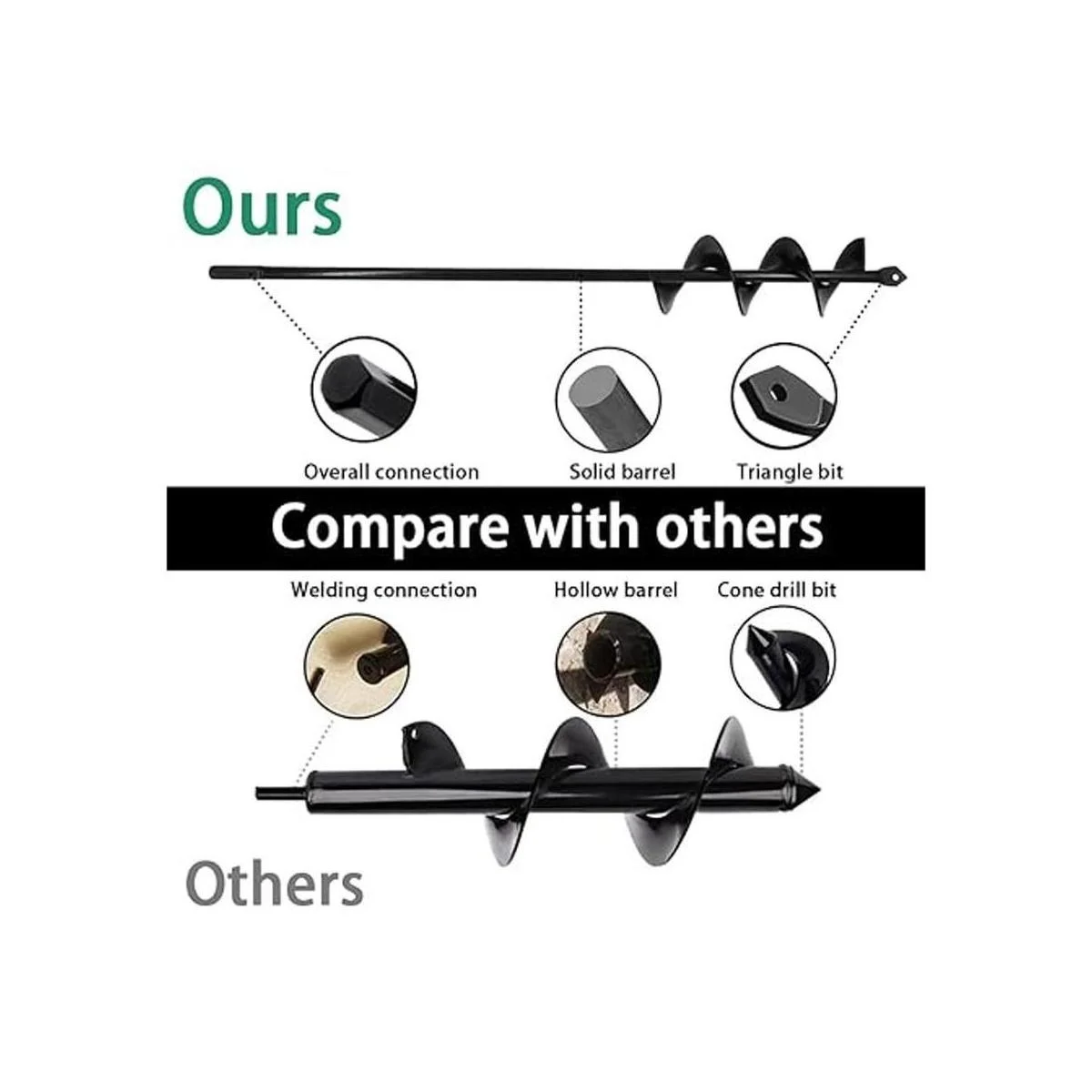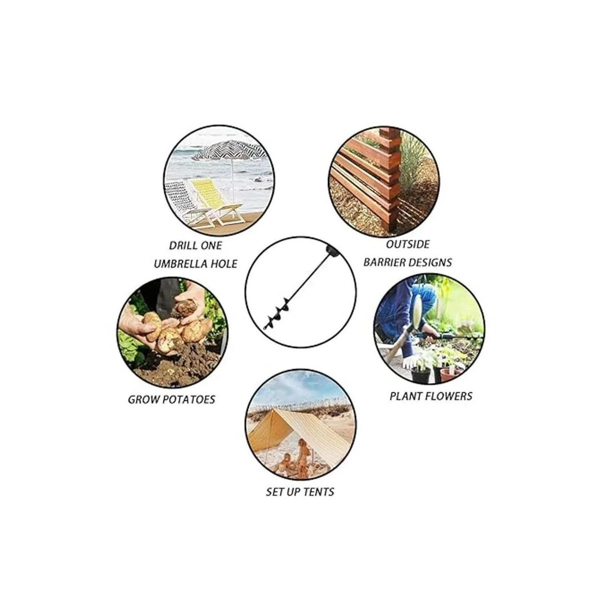 Sin esfuerzo cava agujeros de poste o incluso llévalo de vacaciones para perforar un agujero en la arena para anclar tu sombrilla de playa con nuestra broca de taladro. Será un buen ayudante para ti.