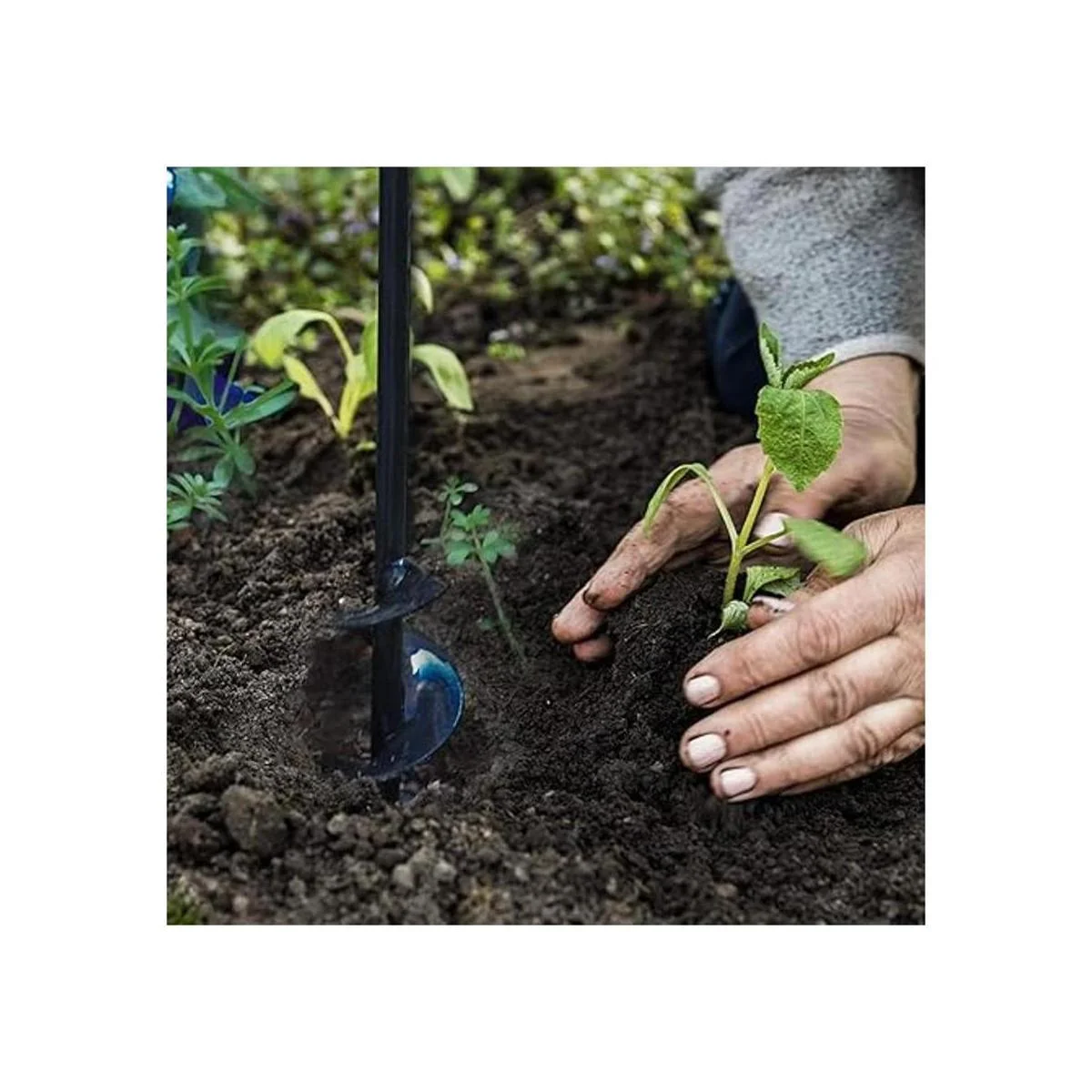 Nuestro taladro de agujero en espiral está diseñado para plantar bulbos, plantas en maceta, verduras, flores, árboles y arbustos de raíz desnuda, tierra o jardineras, mezclar semillas, tierra, fertilizantes, pintura o lotes de mezcla de mortero para paisajes duros.