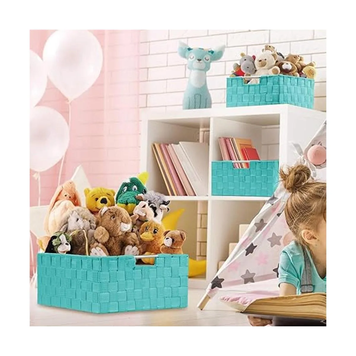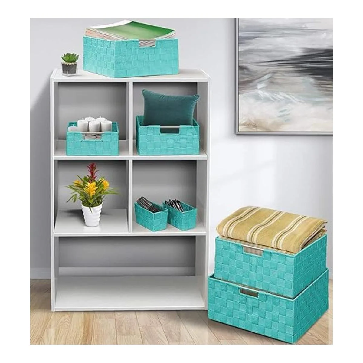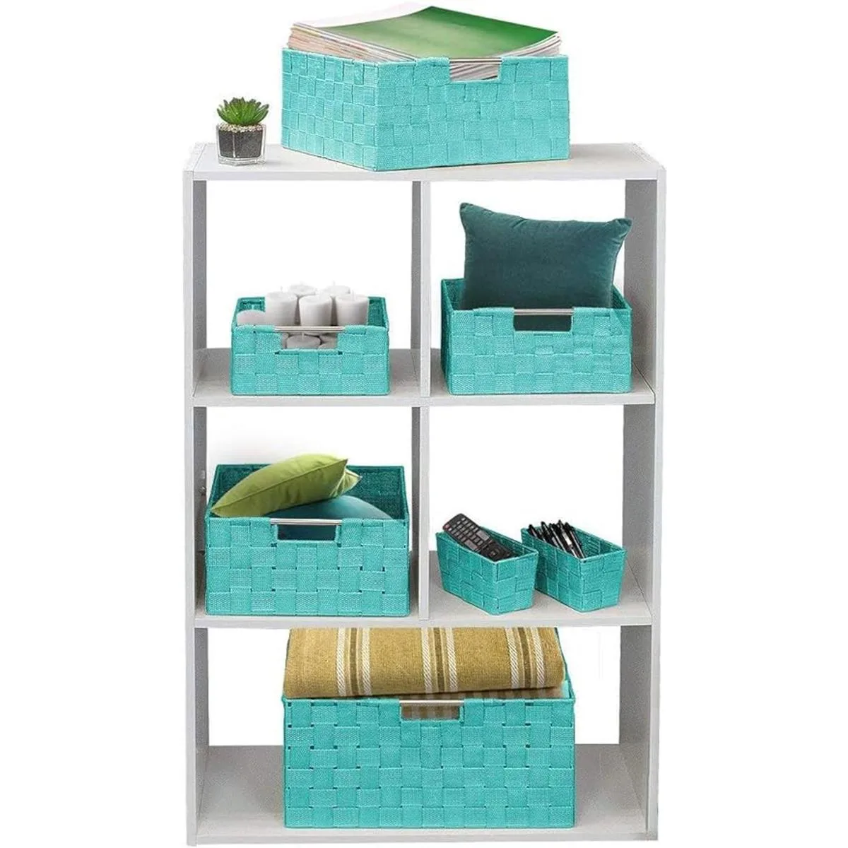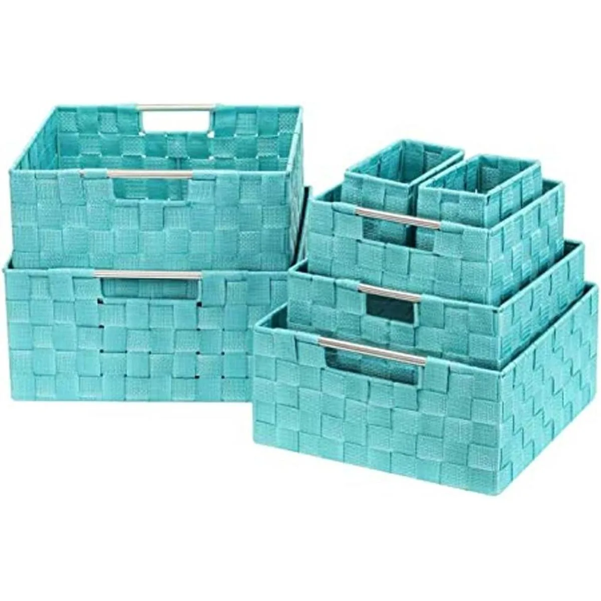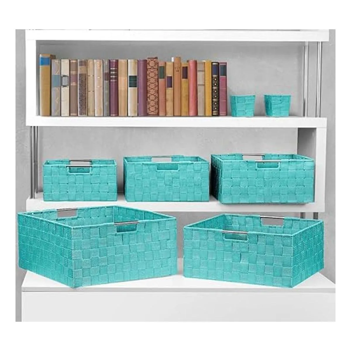 Sorbus Caja de almacenamiento, cesta tejida, contenedor de almacenamiento, juego de organizador de cubos, cesta de almacenamiento apilable, correa tejida, organizador de estantes integrados 7 piezas, color aguamarina