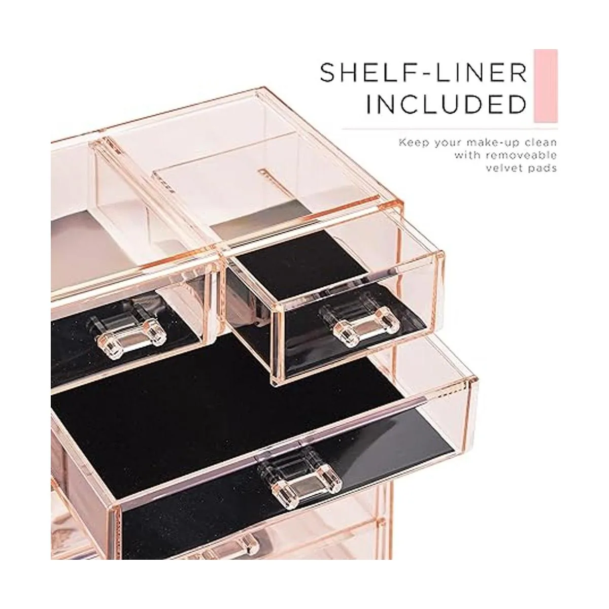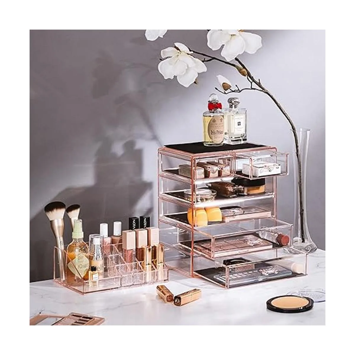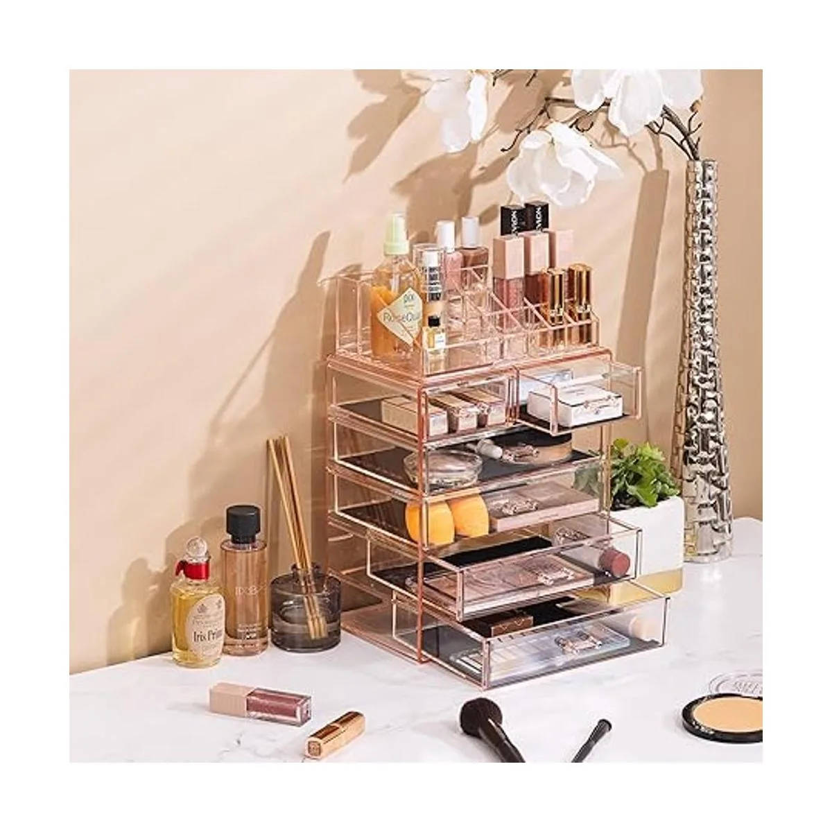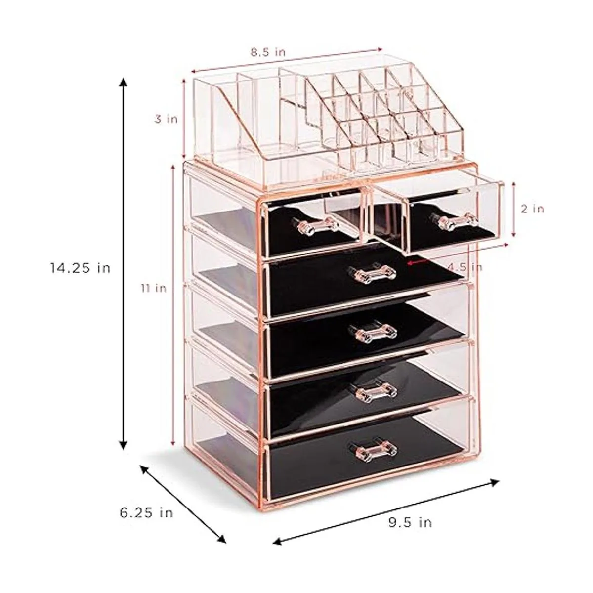 Sorbus Contenedor y exhibidor de acrílico para guardar cosméticos, maquillajes y joyas. Diseño espaciado. Excelente para el baño, la cómoda, el tocador y el mostrador