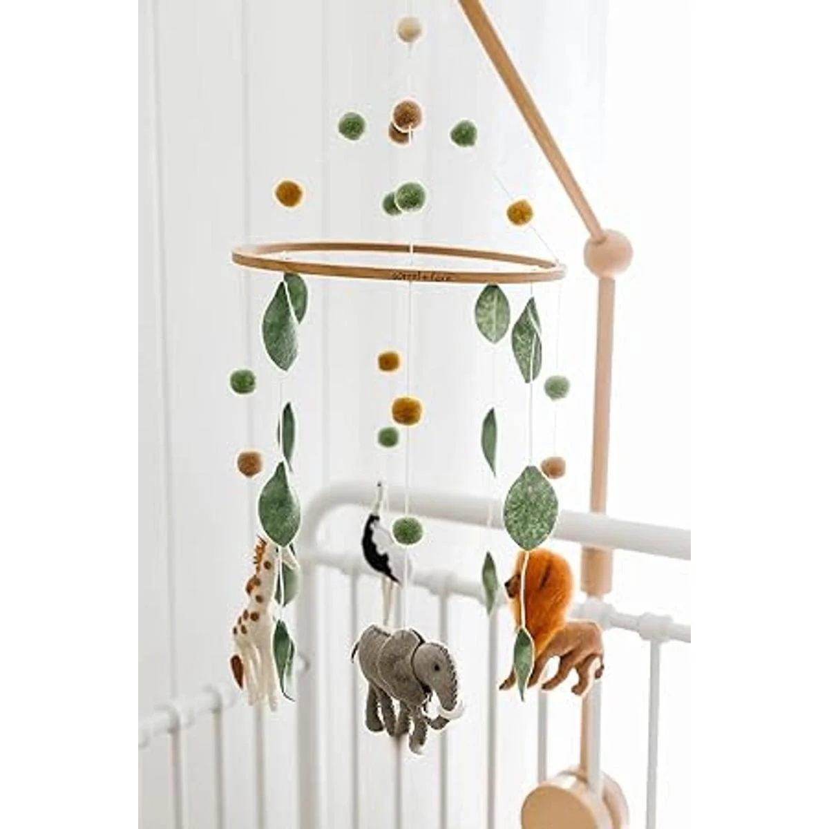 Sorrel Fern Cuna móvil para bebé safari, elefante, león y jirafa Decoración de guardería para techo y baby shower para niños para niños y niñas