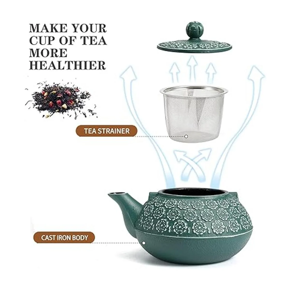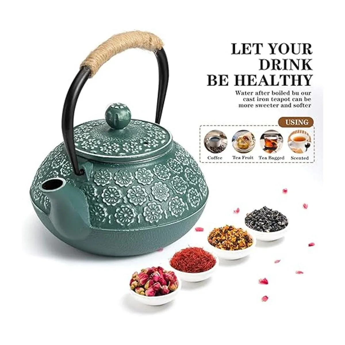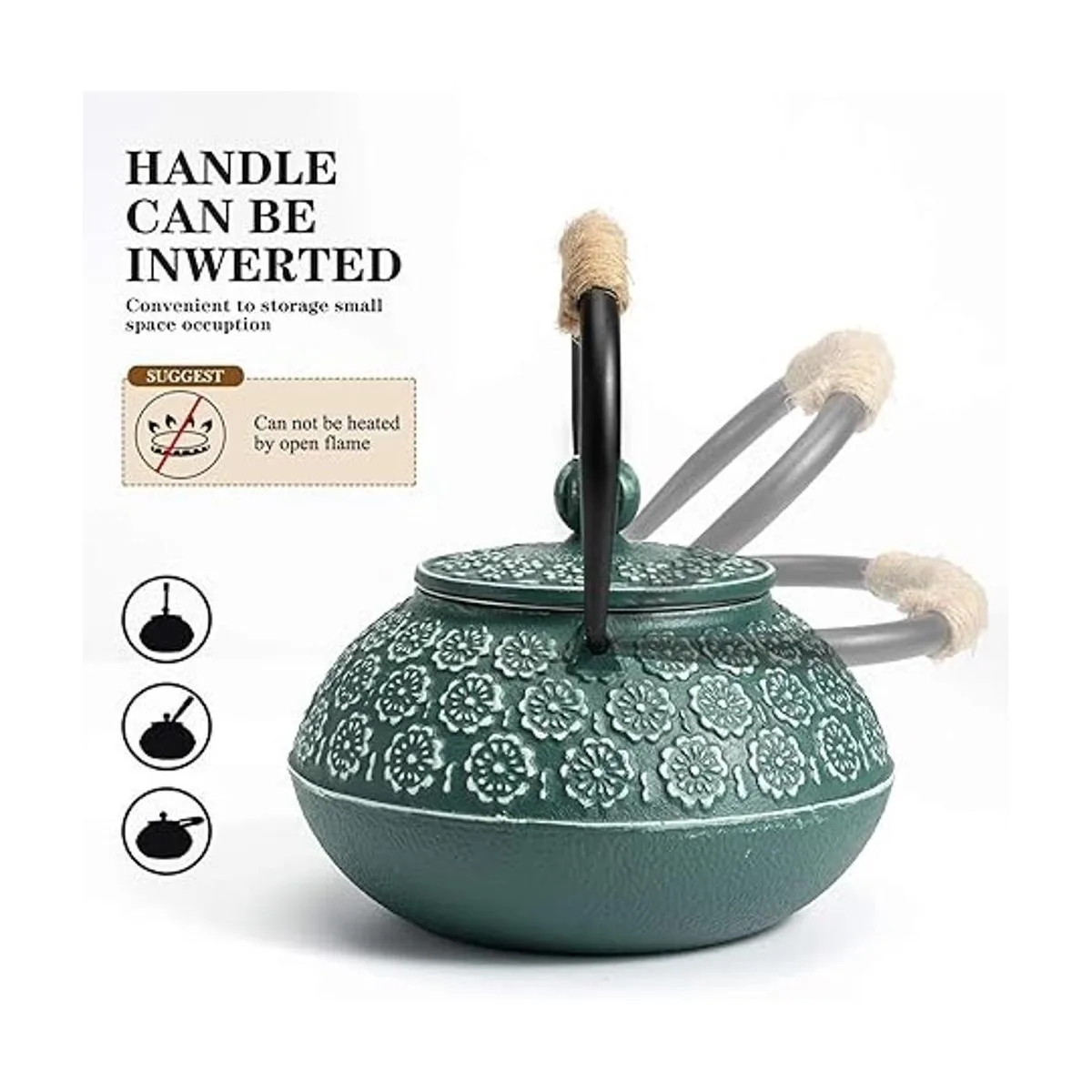 Hecho a mano por artesanos: el cuerpo de la tetera se combina con colores brillantes, adornado con patrones de flores de cerezo, lo que resulta en una belleza armoniosa autoevidente. Si eres una persona de calidad de vida, entonces esta exquisita tetera de hierro fundido es perfecta para ti, y también es un gran regalo para amigos y familiares.