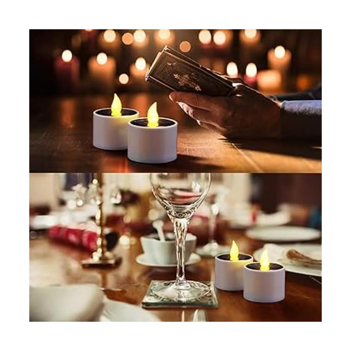 Velas de energía solar: el panel solar hace que estas velas se alimenten por energía solar y se enciendan cuando se oscurece, puedes considerar que estas velas de té son luces de vela recargables de uso circular, ahorra en costosas baterías.