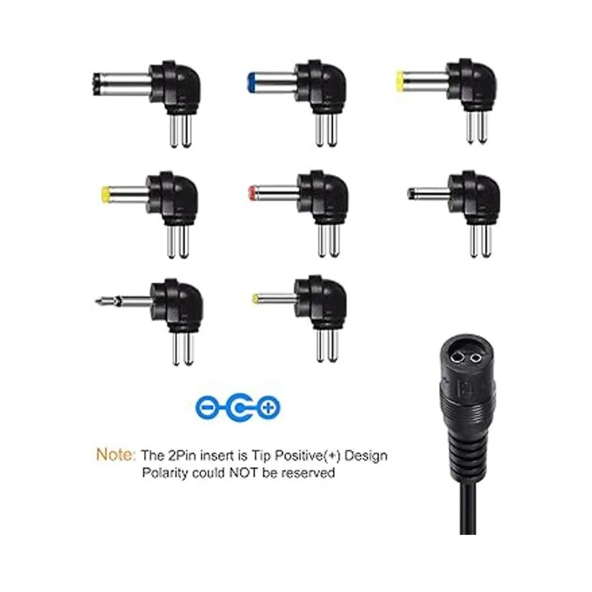 Equipado con 8 adaptadores de alta calidad el tamaño más común, estos diferentes enchufes pueden adaptarse a muchos pequeños aparatos electrónicos domésticos.