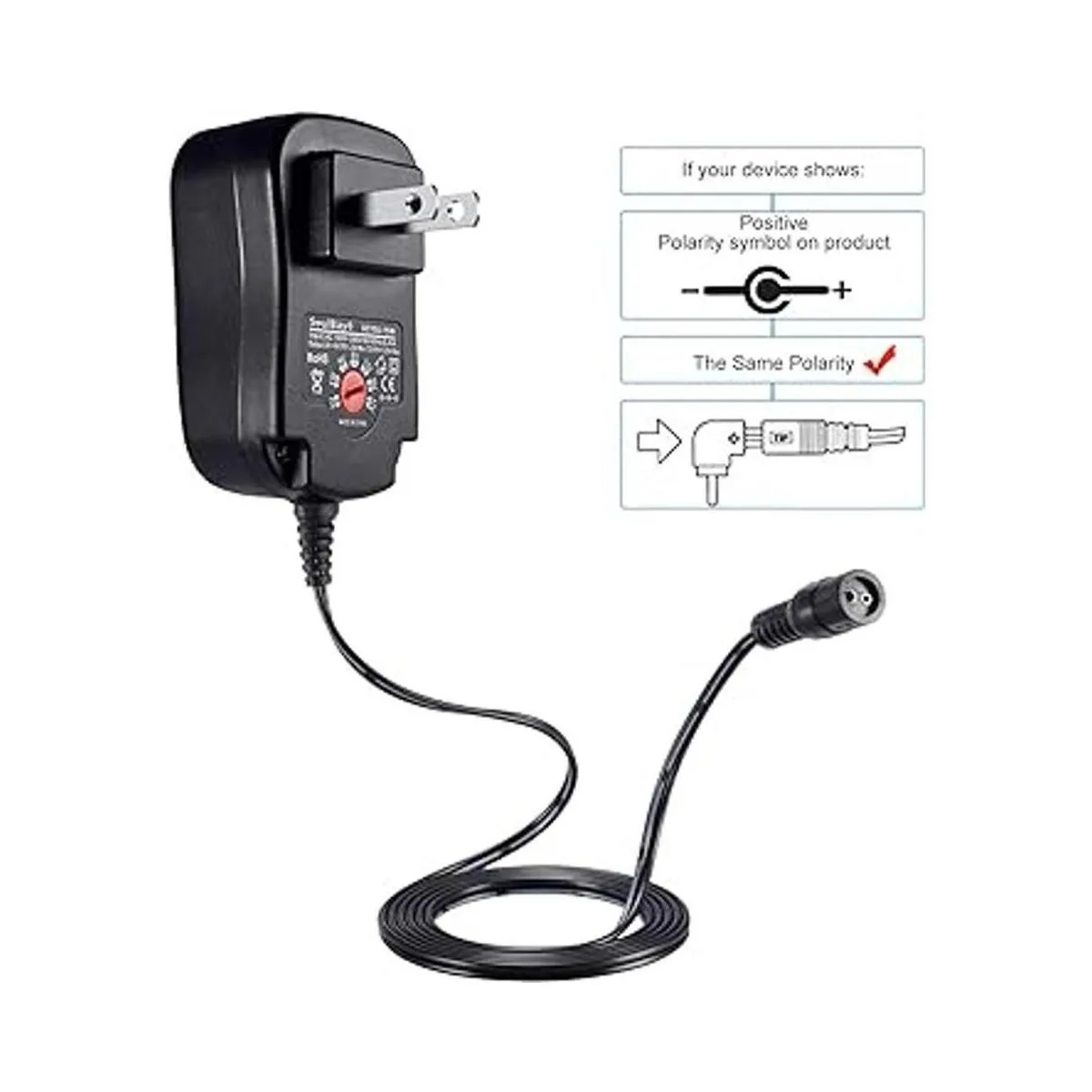 Este adaptador de salida CA/CC es de 3 V, 4,5 V, 5 V, 6 V, 7,5 V, 9 V, 1500 Ma, 1,5 A máx., 12 V, 1250 mAh, 1,25 A máximo. Es fácil ajustar el voltaje para adaptarse a diferentes dispositivos con una pequeña llave.