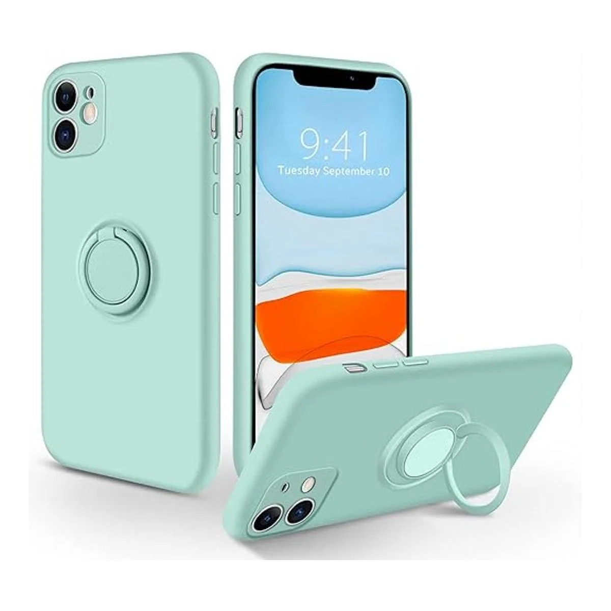 SouliGo Funda para iPhone 11, funda de teléfono para iPhone 11, funda protectora de silicona delgada, soporte para anillo, goma suave, híbrida, protección a prueba de golpes, antideslizante, con montaje en coche, funda para niñas, color verde menta