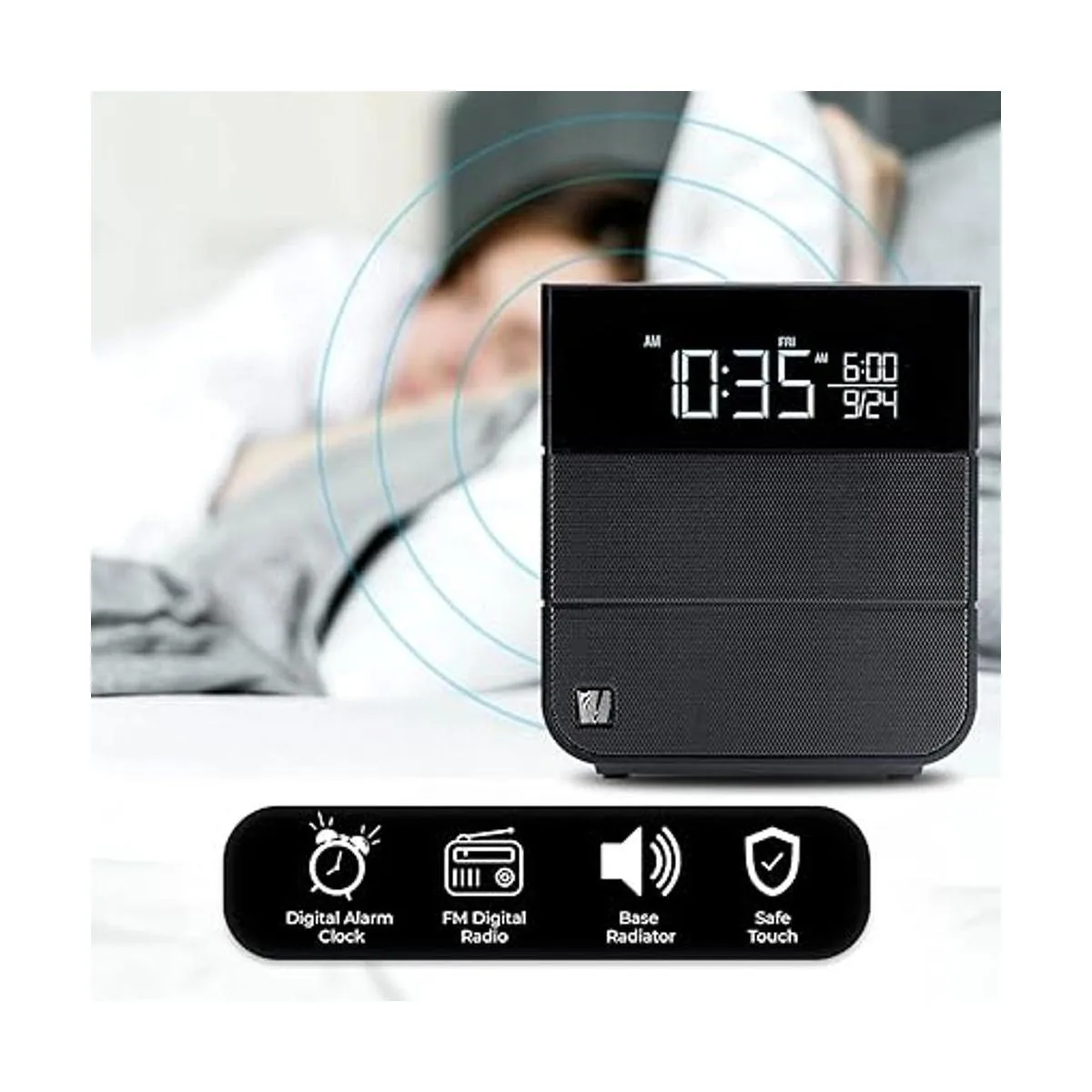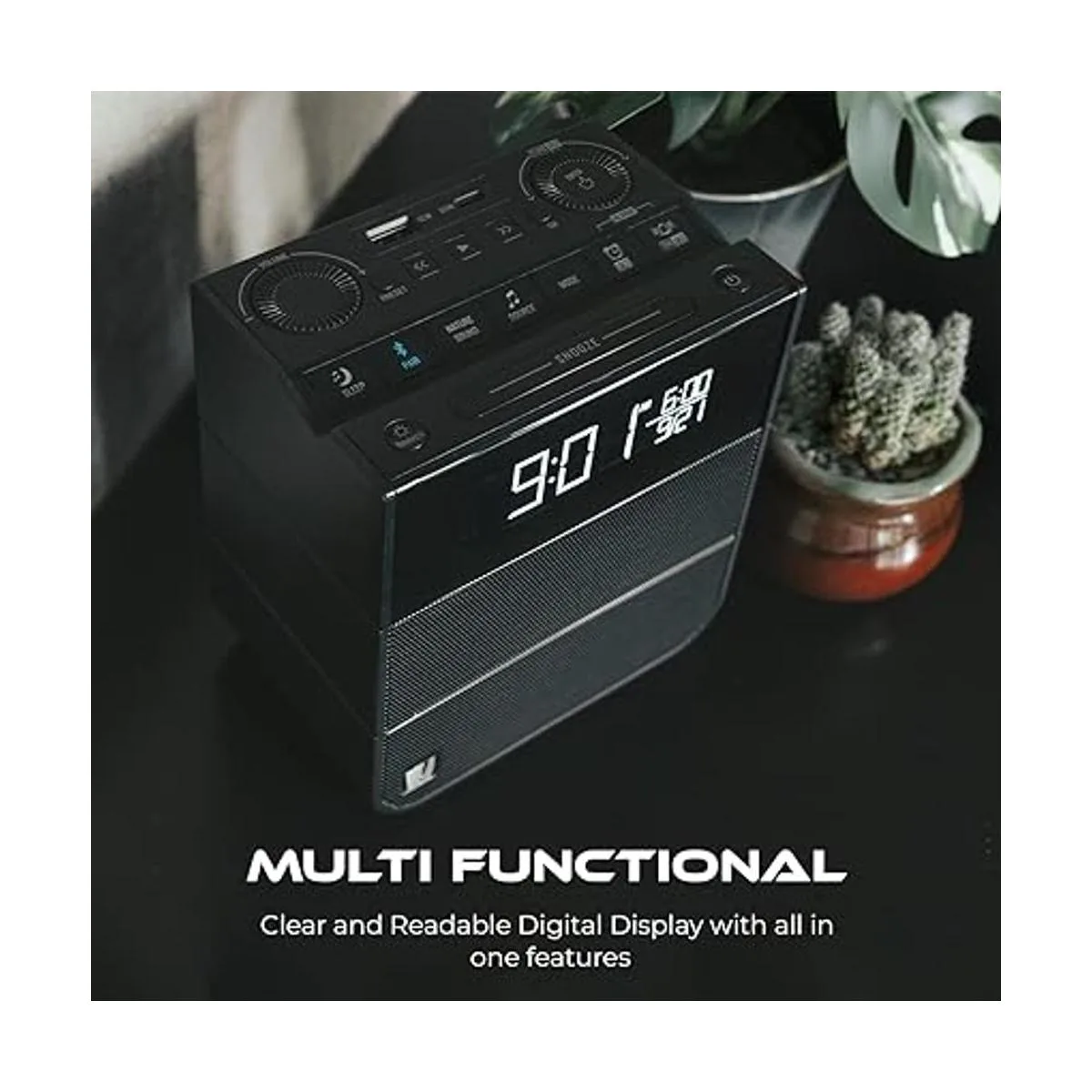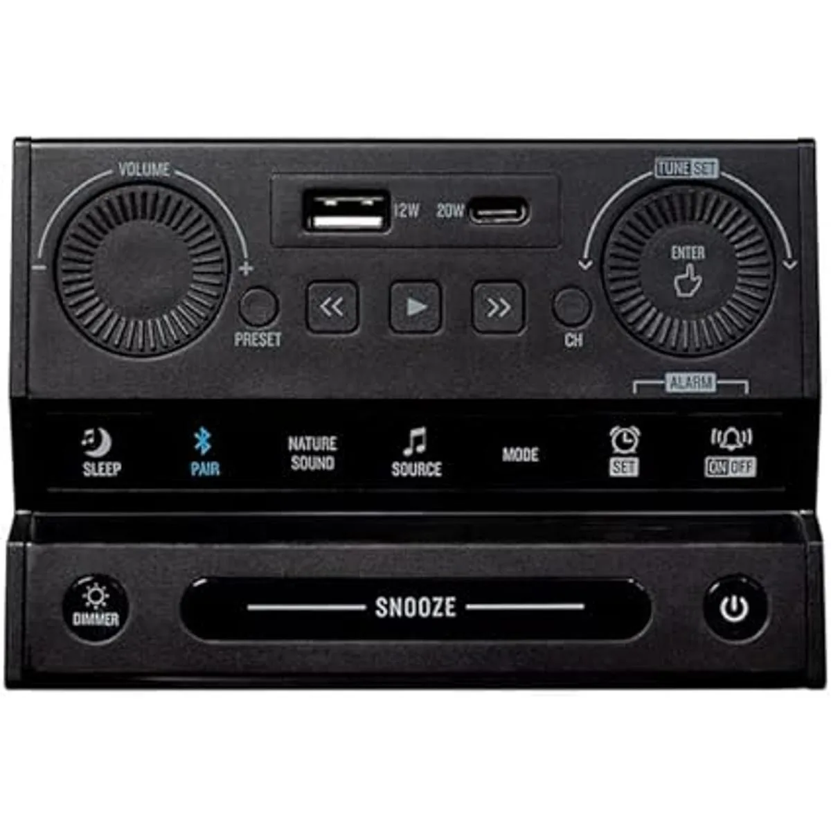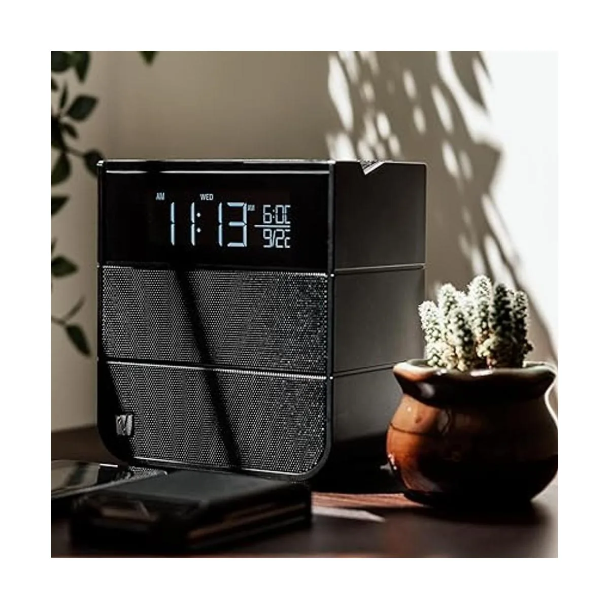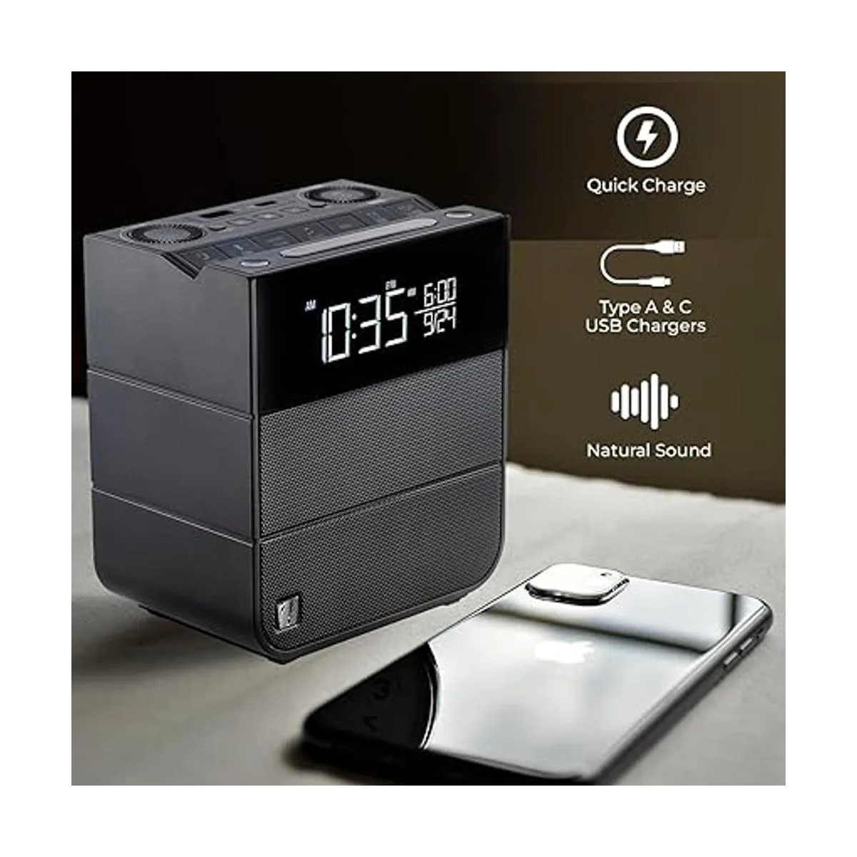 Soundfreaq Sound Rise II, reloj despertador de radio de noche, radio digital inalámbrico, con Bluetooth, pantalla grande, altavoces de audio, carga rápida y ruido ambiental de la naturaleza negro