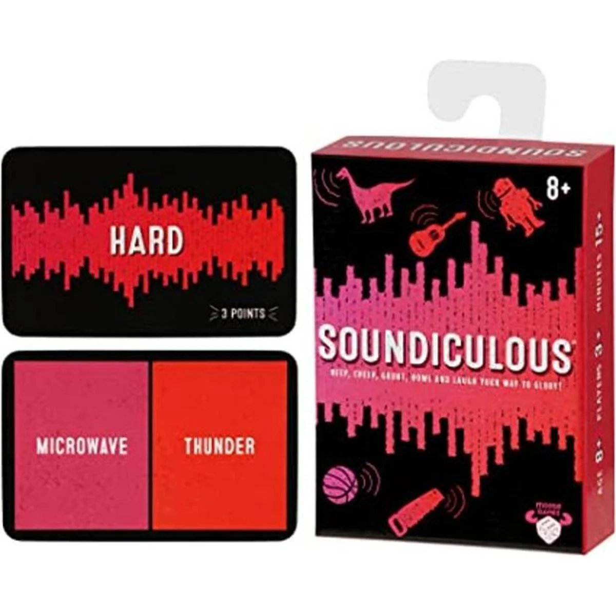 Gran diversión para niños a partir de 8 años, adolescentes y adultos por igual Soundiculous hará que todos se rían de cualquier noche de juegos, reunión familiar o reunión de vacaciones. 310 jugadores.
