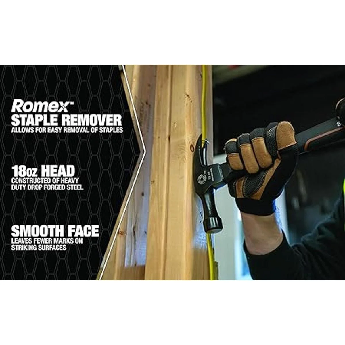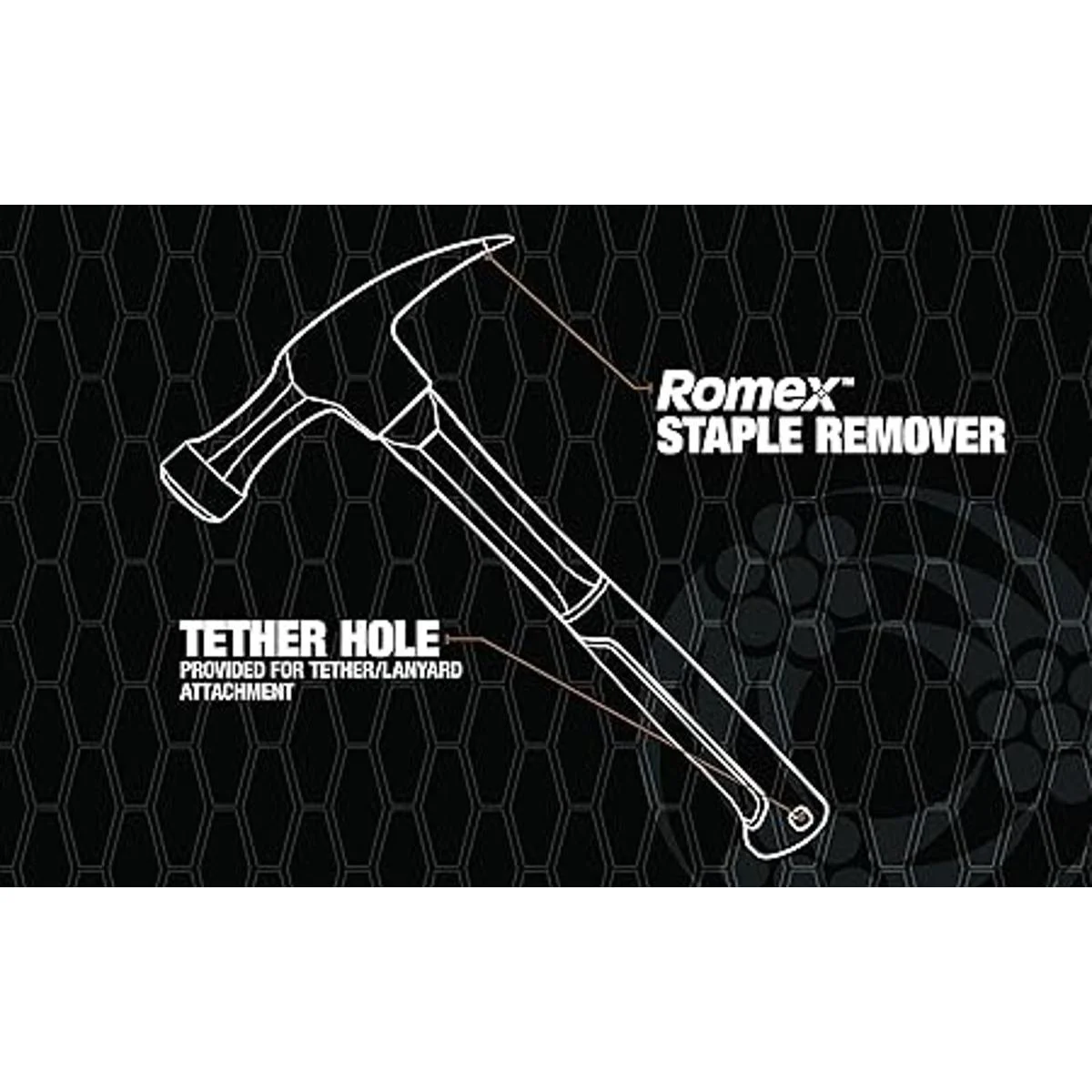 Southwire Bmeh18 Martillo de electricista Romex, removedor de grapas Romex, agujero de amarre para seguridad, cabeza de 18 onzas con cara lisa, acero forjado resistente 65116740
