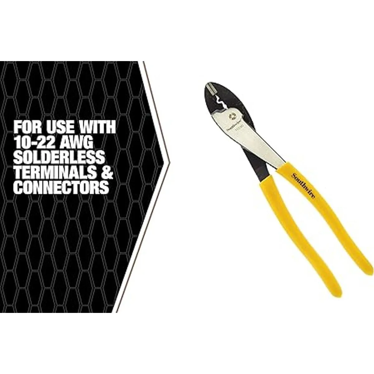 Construcción y diseño: esta herramienta de crimpado/corte de 9 pulgadas está diseñada para engarzar una variedad de terminales y conectores sin soldadura aislados y no aislados.