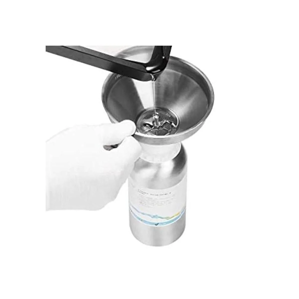 El embudo está hecho de acero inoxidable, fácil de usar y limpiar, y filtra eficazmente los contaminantes mientras la resina se vierte en la botella