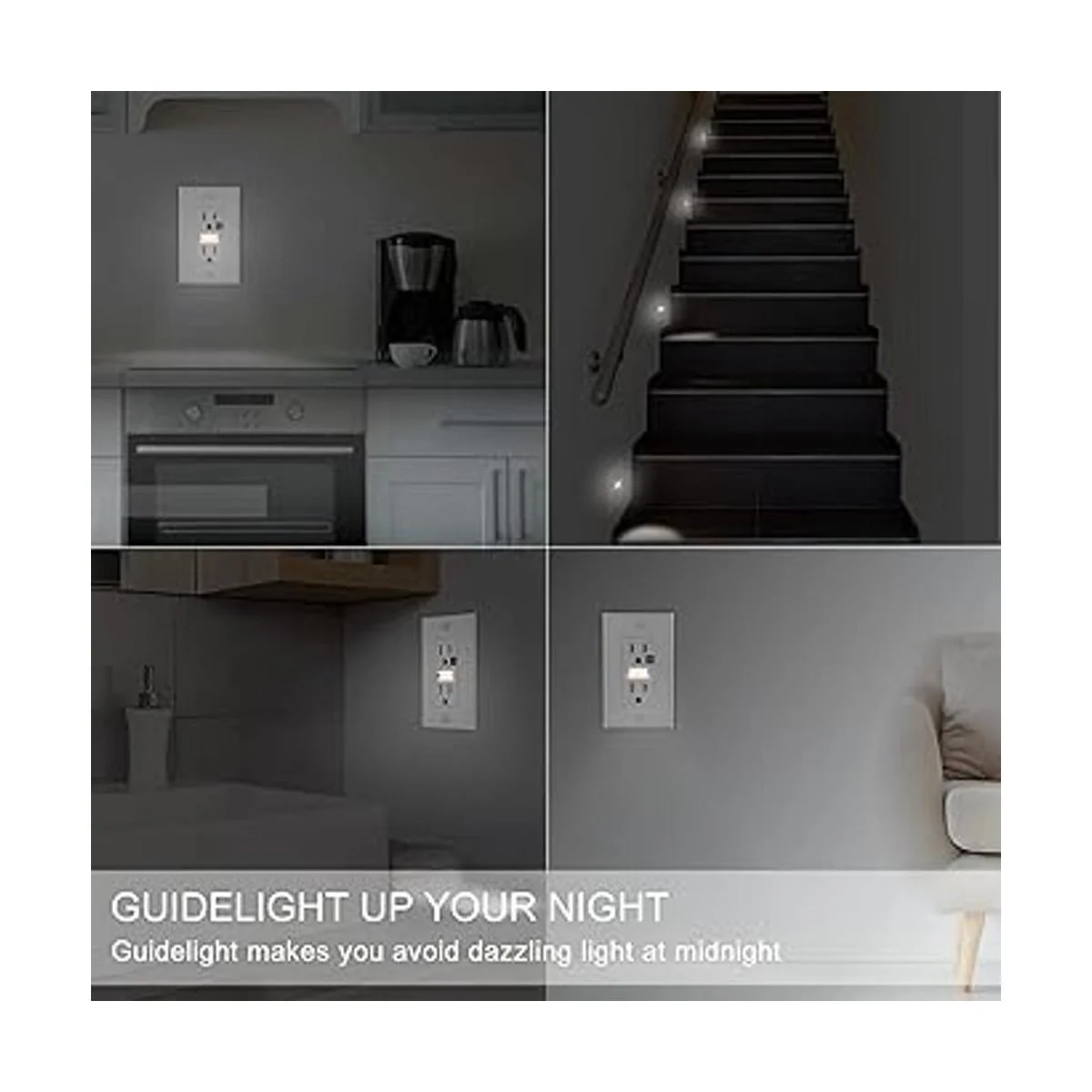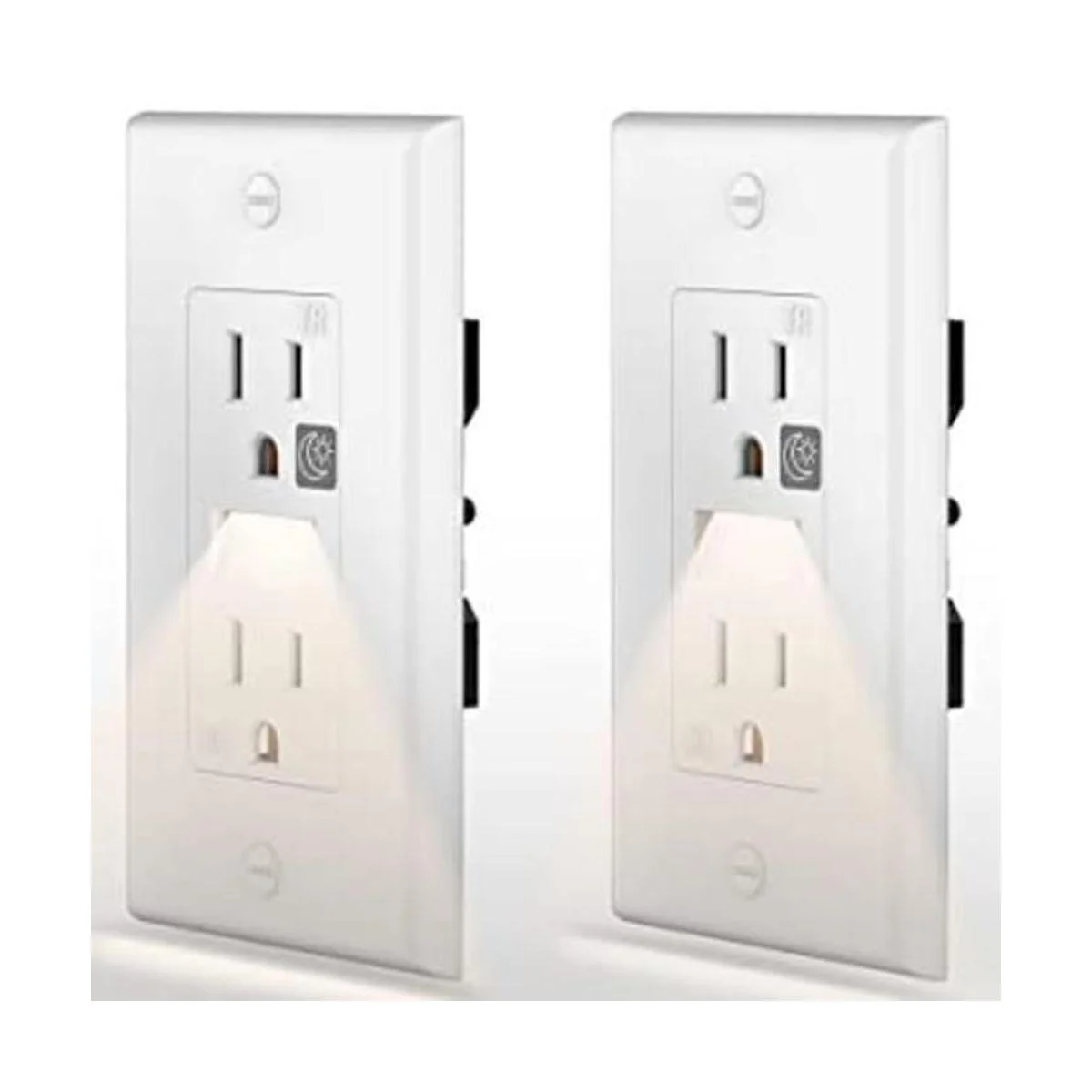 SOZULAMP Paquete de 2 salidas de luz nocturna LED, salidas eléctricas de luz nocturna, receptáculo decorativo resistente a manipulaciones TR, 125 V, 15 amperios, 2 postes, 3 cables, color blanco