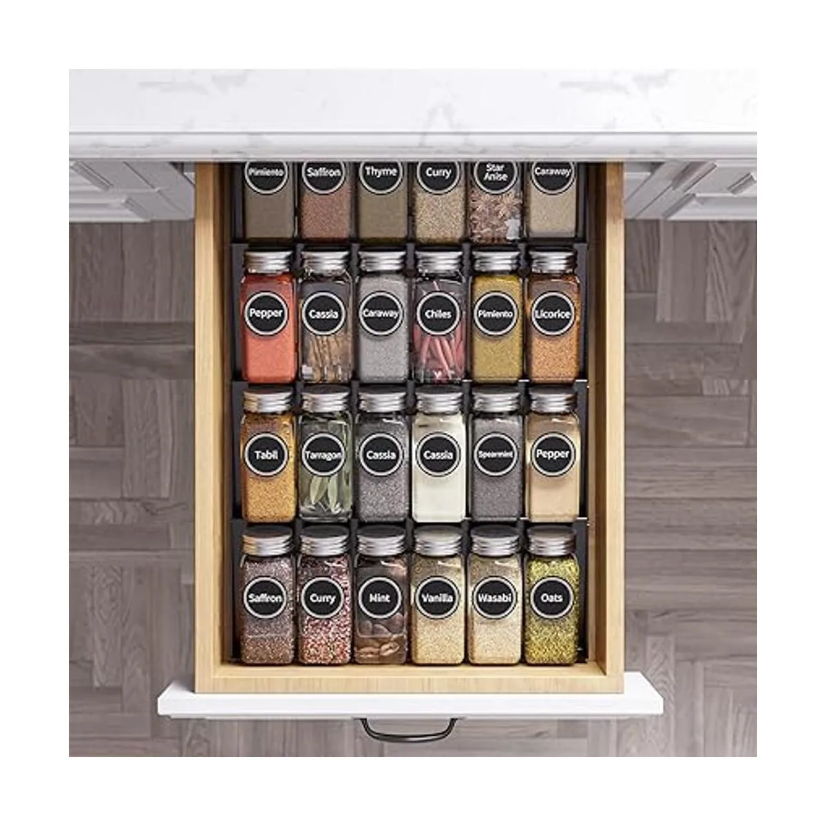 SpaceAid 24 frascos de especias con etiquetas botellas