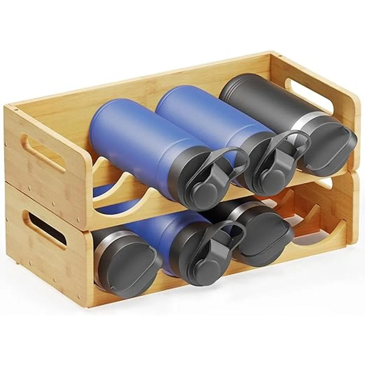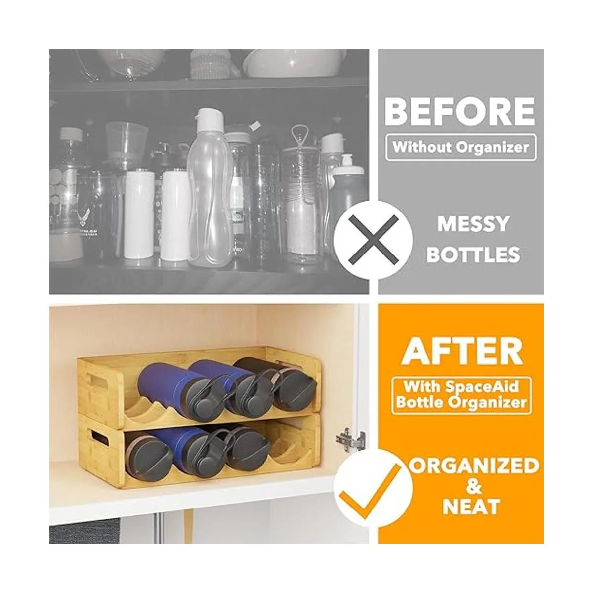 Almacenamiento ideal para botellas: mantén tu hogar limpio y mantén un seguimiento de tus botellas de agua mejor con este soporte organizador de bambú; en lugar de apretar incómodamente esas botellas de agua en espacios vacíos del armario