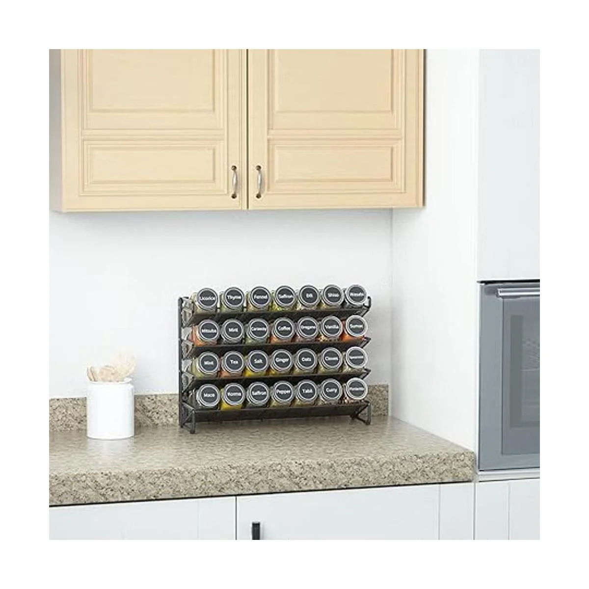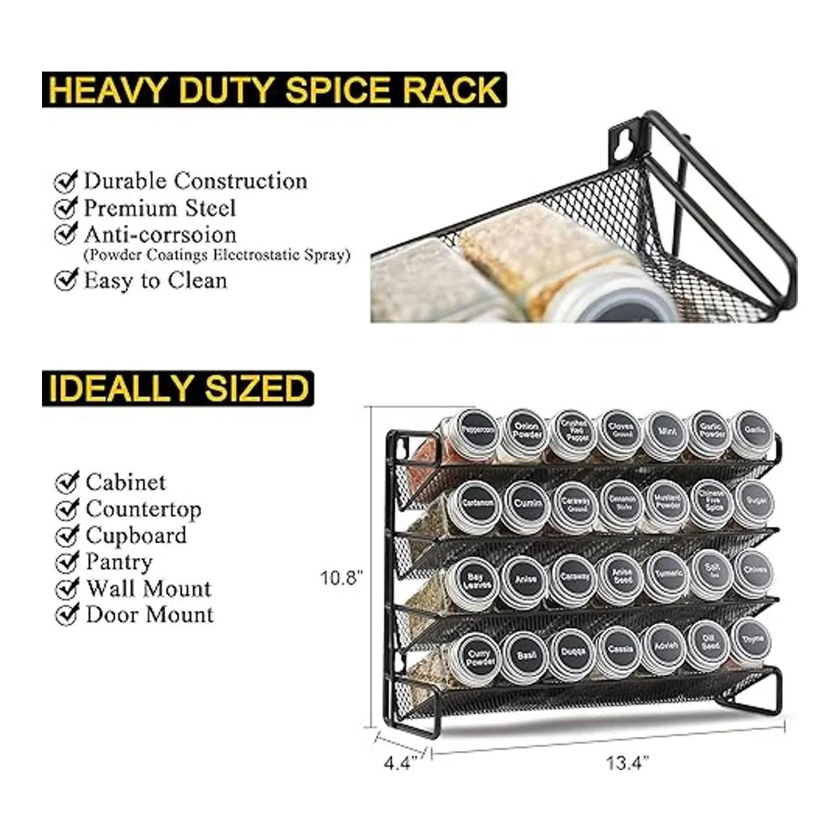 Estante para especias de 4 niveles: hecho de acero resistente y revestimientos de polvo con acabado electrostático; el diseño inclinado hace que sea fácil de localizar y agarrar rápidamente lo que necesitas, convierte cualquier desorden de especias en una obra maestra organizada