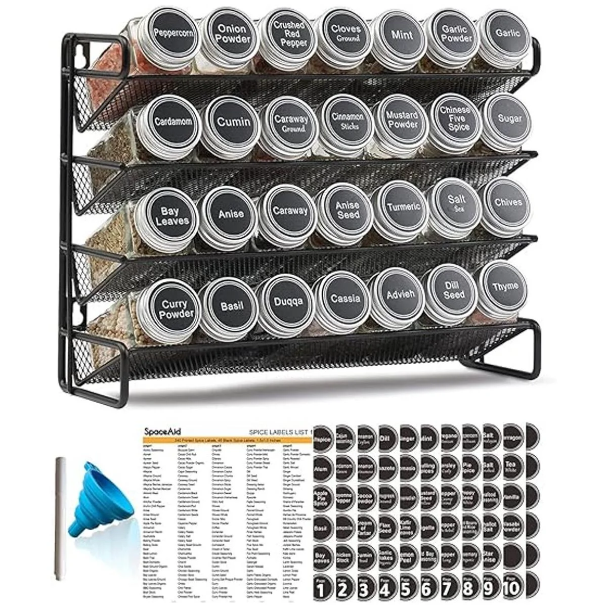 SpaceAid Organizador de especias con 28 tarros de especias, 386 etiquetas de especias, marcador de tiza y juego de embudo para gabinete, encimera, despensa, armario o puerta y montaje en pared, 28 tarros, 13.4 pulgadas de ancho x 10.8 pulgadas de alto
