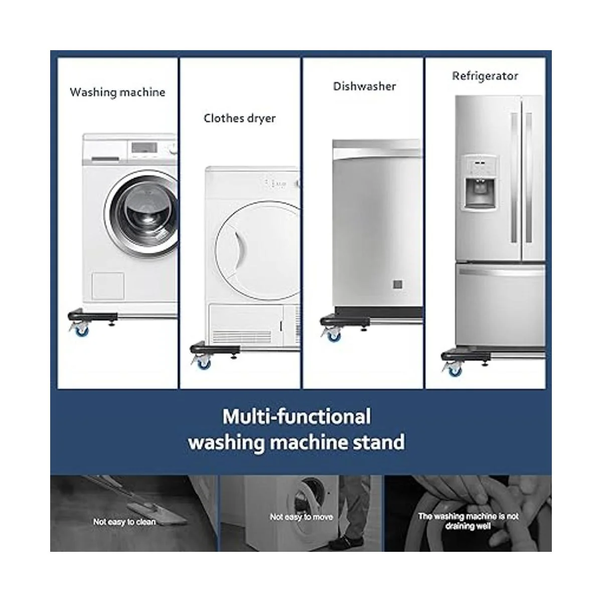 Ruedas de 360 grados: los rodillos de electrodomésticos están equipados con ruedas giratorias de 360 grados y 4 bloqueos. Las ruedas resistentes están hechas de tubo de acero inoxidable de alta calidad fuerte y duradero. Coloca el soporte de la lavadora debajo de los refrigeradores, lavadoras u otros electrodomésticos para moverlo fácilmente.