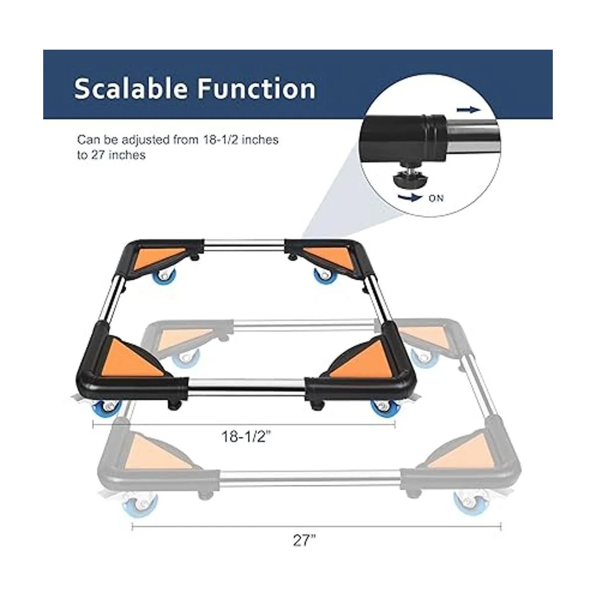 Tamaño ajustable: la base escalable para electrodomésticos se puede ajustar para objetos de 181/2 pulgadas a 27 pulgadas como se muestra en la segunda imagen principal, puedes enrollar sin esfuerzo una amplia variedad de artículos como lavadora, nevera, armario a destino.