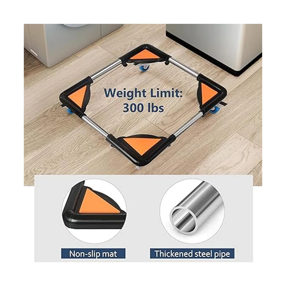 Base móvil universal: el rodillo móvil se utiliza para la parte inferior de aparatos como lavadoras portátiles, lavadora y secadora, refrigerador o mini refrigerador. El mini soporte para nevera puede acomodar fácilmente cualquier peso hasta 299.8 lbs.