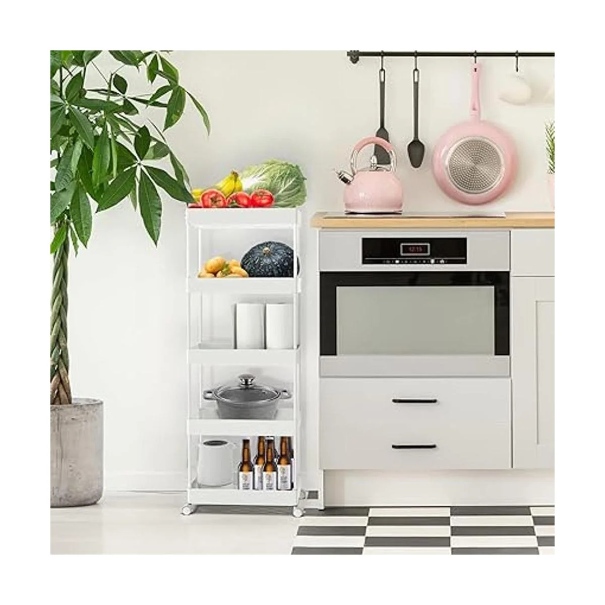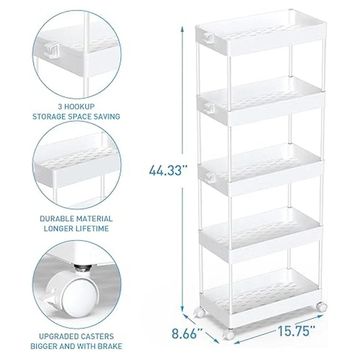 Carrito de almacenamiento flexible: el carrito de almacenamiento rodante de 5 niveles tiene un diseño de 8.66 pulgadas que se puede utilizar en espacios reducidos de tu hogar para almacenamiento. Adecuado para armarios, cocinas, baños, garajes, lavanderías, oficinas.