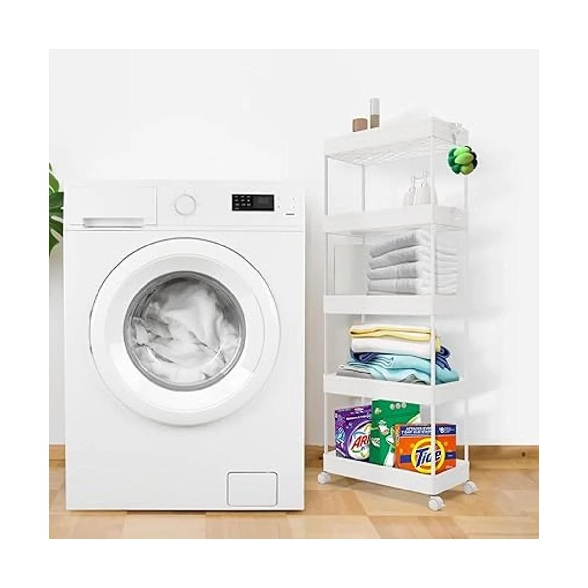 Solución de almacenamiento móvil y aro lateral: 4 ruedas fáciles de deslizar y duraderas que hacen que el carrito de almacenamiento sea suave y cómodo de poner y quitar. Y 3 aros laterales proporcionan más espacio para tu almacenamiento