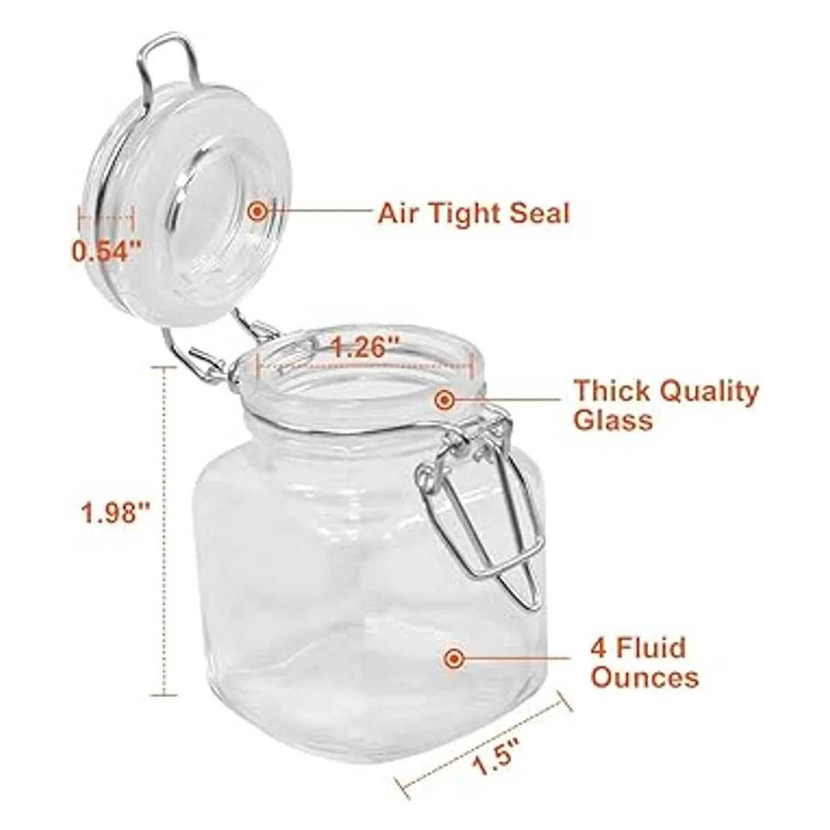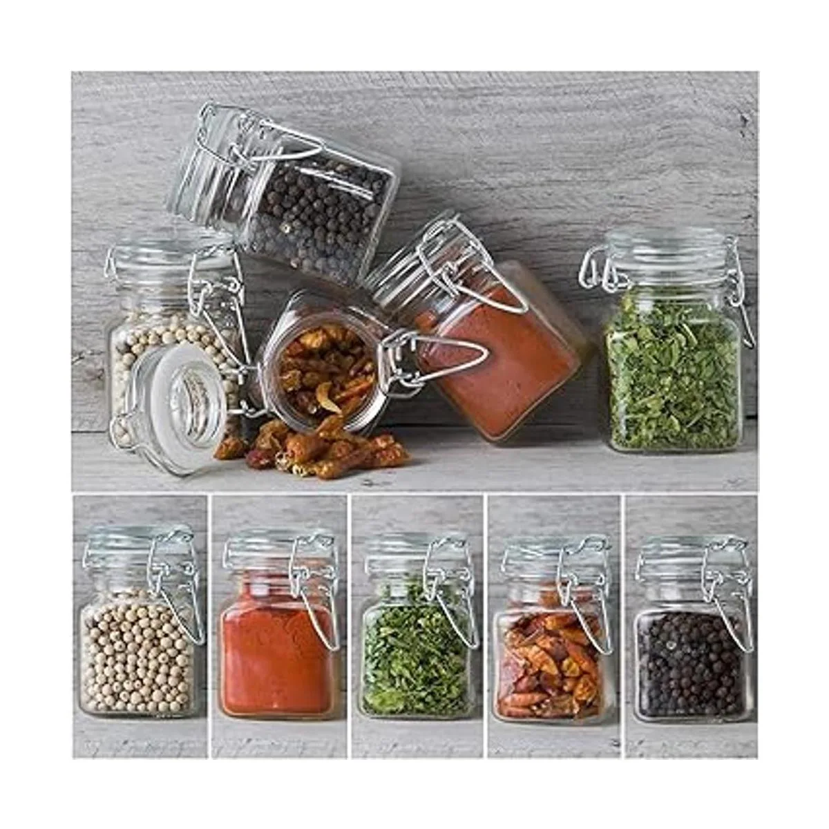 Grandes tarros de especias: los tarros de vidrio cuadrados transparentes son de tamaño perfecto para ser utilizados como tarros de especias de vidrio. Los mini recipientes de almacenamiento herméticos de vidrio te ayudan a añadir tu toque personal a tu juego de tarros de especias caseros, tarros de condimentos, tarros de sal de baño, tarro abatible, tarro de condimentos, tarros de almacenamiento de cocina.