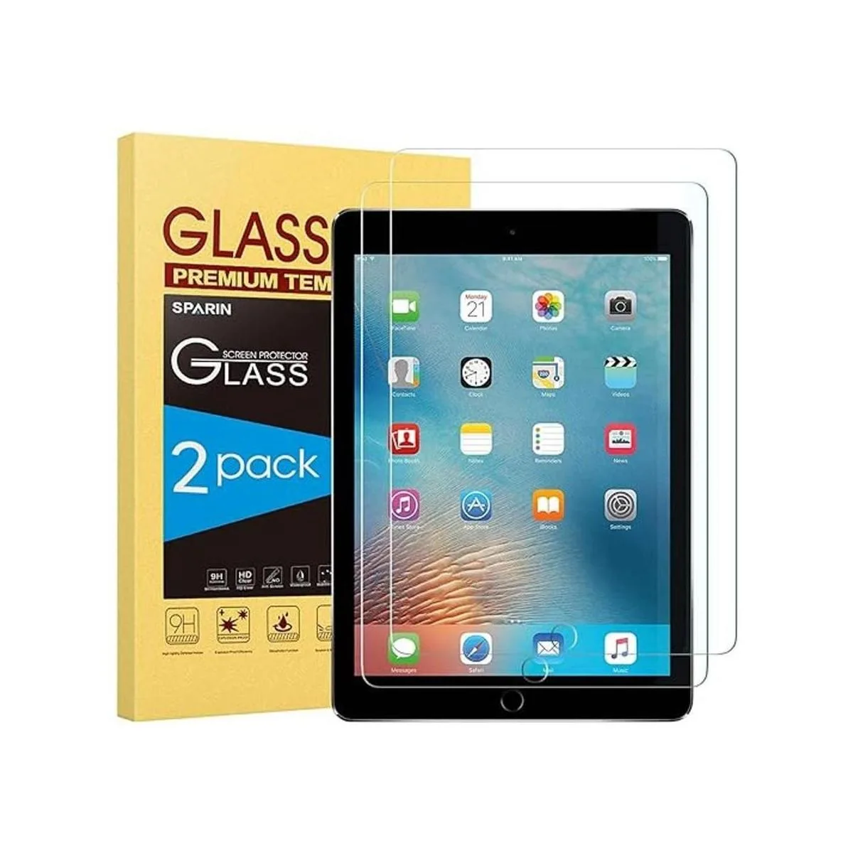 SPARIN Paquete de 2 protectores de pantalla compatibles con iPad de 6 generación y iPad Pro 9.7, protectores de pantalla de vidrio templado