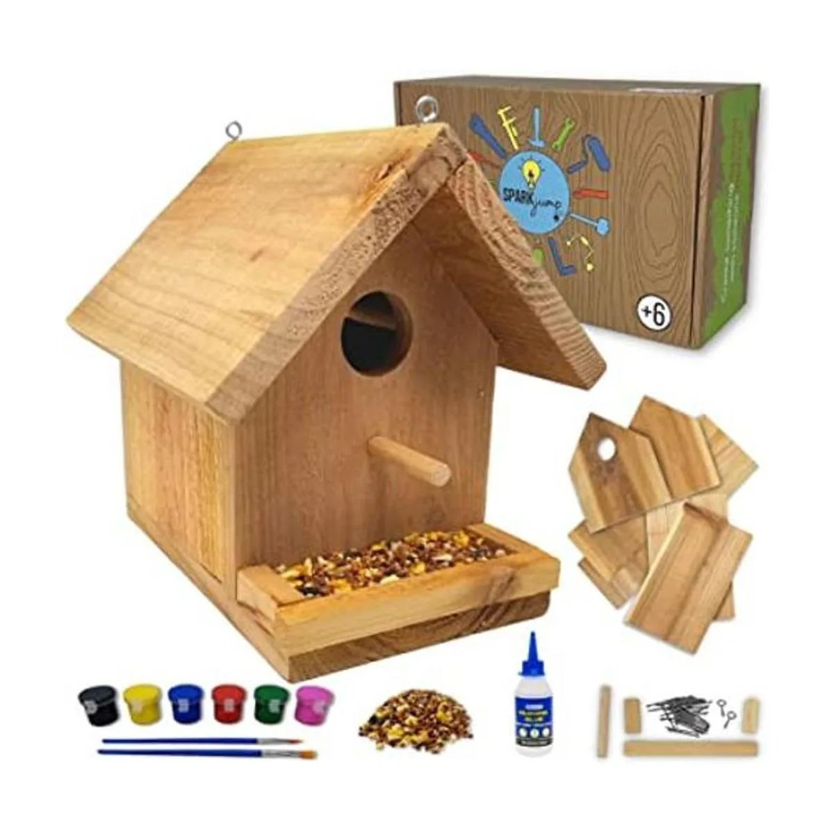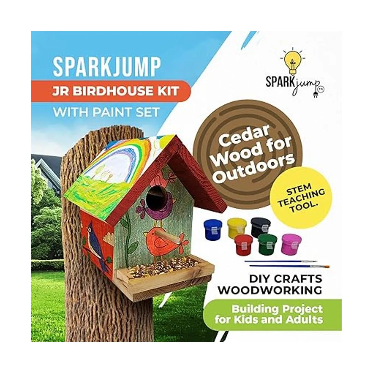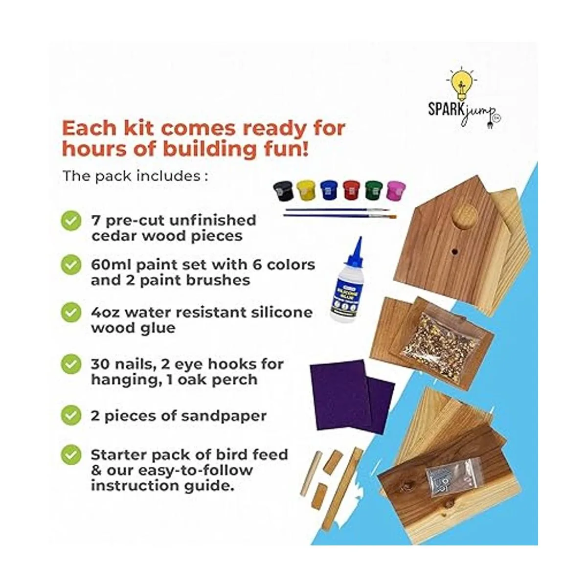 SparkJump Jr Kit de casa de pájaros Madera de cedro para exteriores con juego de pintura Comedero para pájaros Artesanía de bricolaje para carpintería, proyecto de jardinería para niños, adultos, familia