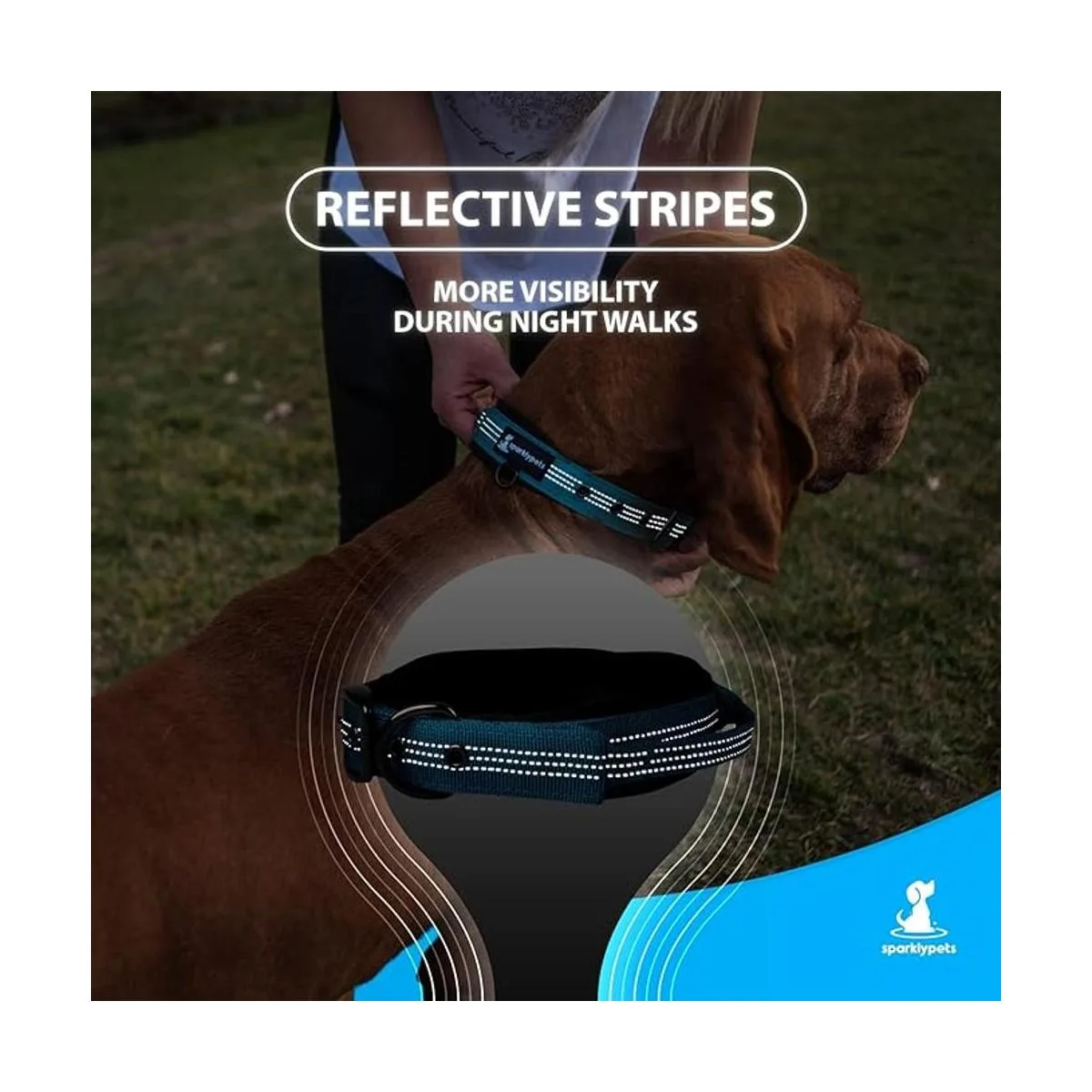 Un collar reflectante para perro para mayor visibilidad durante los paseos nocturnos: la seguridad es lo primero cuando estás paseando a tu perro por la noche. Es por eso que es esencial utilizar collares de perro medianos y grandes para hembras/medianos y grandes para hombres que brillan en la oscuridad. Elige los collares de perro hembra SparklyPets y tu perro será visto todo el tiempo con la ayuda de las rayas reflectantes