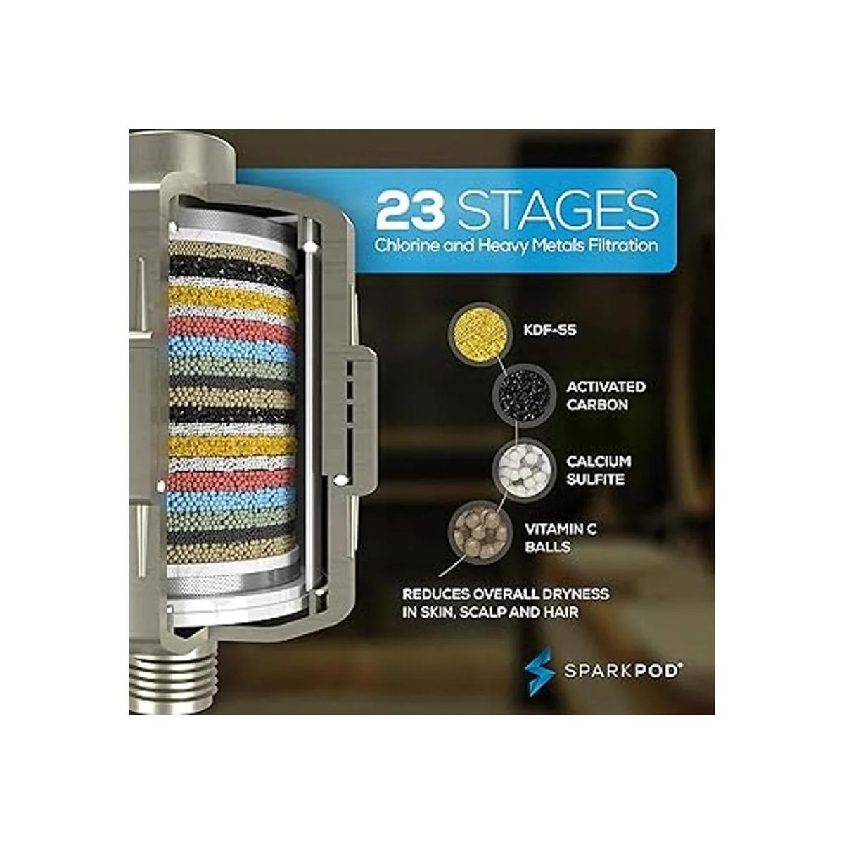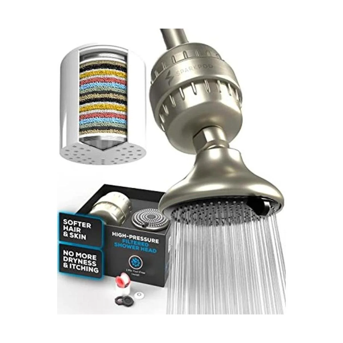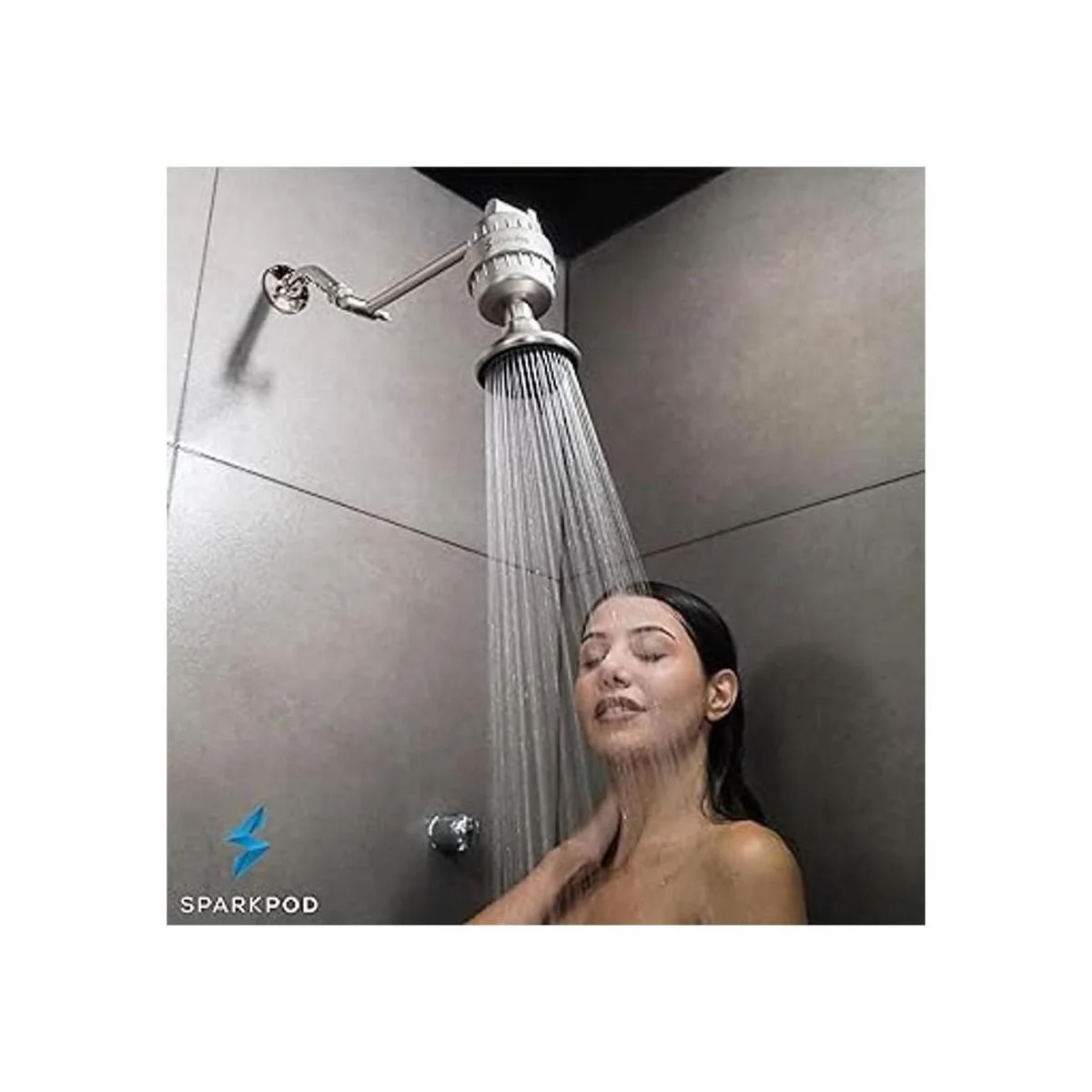 SparkPod Cabezal de ducha con filtro de agua de alta presión para cloro y sustancias nocivas reduce el eccema y la caspa, ajustable y fácil de instalar níquel cepillado