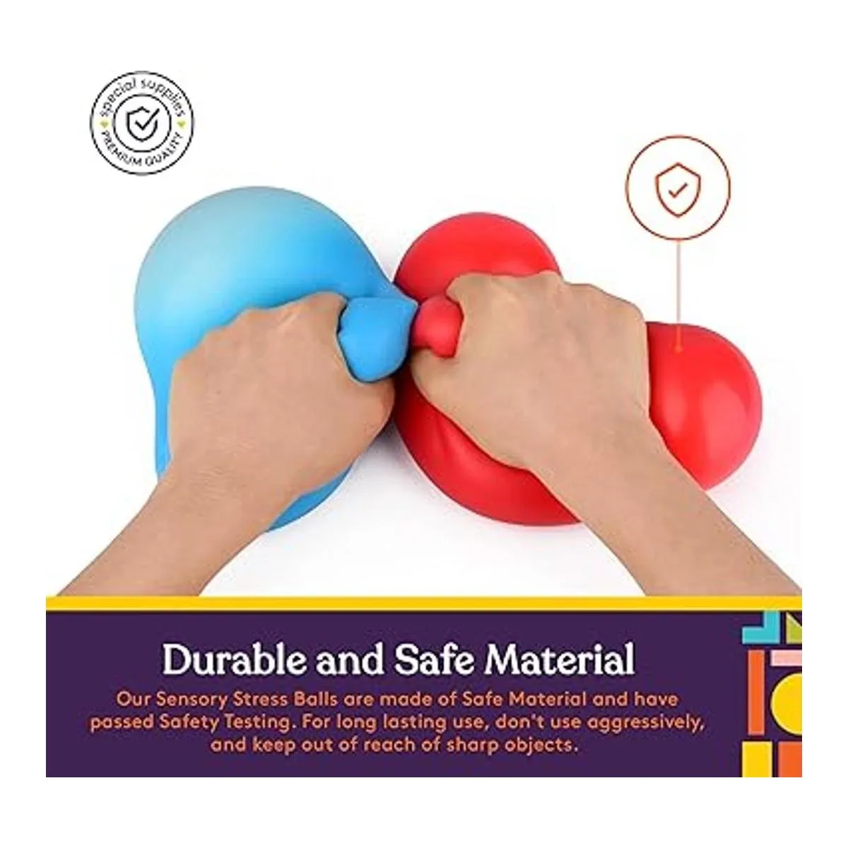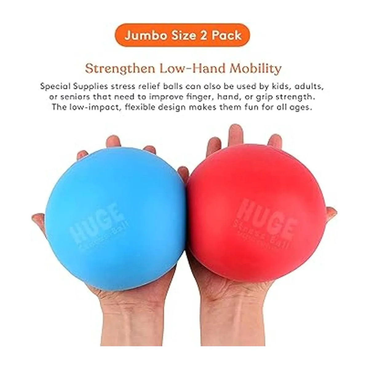 Special Supplies 2 enormes bolas gigantes de estrés para niños y adultos, paquete de 2, juguetes sensoriales coloridos y esponjosos con relleno suave, exprimible, baja destreza y terapia de ansiedad